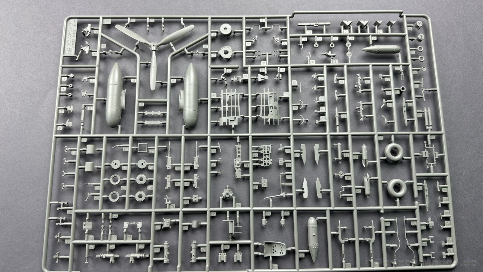 A6M2 Zero Fighter w/ Interior Willkommen zur Vorstellung eines weiteren Fliegers von Border Model im Maßstab 1:35. Für den geneigten Modellbauer ergeben sich in dem sehr stark frequentierten Maßstab 1:35 schöne Effekte, wie passenden Zubehör in Form von Figuren, Fahrzeugen und Zubehör. Doch kommen wir zum Flugzeug. Die Zero ist schlicht „DAS“ Flugzeug, wenn man an die japanische Luftwaffe denkt umso schöner ist das sich ein Hersteller dessen angenommen hat. Wir finden in dem Stülpkarton insgesamt: - 4 Spritzlinge in hellgrauen Kunststoff Die Anleitung ist erstaunlich klar und gut gegliedert und beinhaltet 20 Baustufen + 3 Seiten für die Farbprofile. Der Bau startet mit dem Motor der sich mit Fug und Recht als Bausatz im Bausatz präsentiert. Alle Komponenten weisen großartige Gravuren und Details auf. Dank der Bauweise können die Wartungsklappen des Fliegers auch offen dargestellt werden, sodass der Motor auch zur Geltung kommt. Nächster Schritt ist das Cockpit inkl. der Waffenanlage der Bug MG´s. Was mir sehr zugesagt hat, dass die Flügel annährend aus einem Bauteil bestehen wo die oberen Flügel links und rechts sowie Motor, und Cockpit montiert werden. Ich empfehle die Bauteile bzw. die Sektionen trocken anzupassen, bevor Kleber ins Spiel kommt. In Baustufe 12 muss man sich entscheiden, entweder die kleinen Bomben, eine größere Bombe oder den Zusatztank zu montieren. Alles zusammen würde vom Gewicht nicht passen. Interessant ist in der Anleitung das schriftliche Hinweise nur in chinesischen Schriftzeichen gedruckt worden sind, zum Glück ist ersichtlich, was der Hersteller gemeint haben könnte. Die sparsam eingesetzten Ätzteile haben meiner Meinung nach absolute Berechtigung, so sind die Gürte aus Ätzteilen hergestellt sowie einige Anbauteile. Was dem Bausatz noch gut getan hätte wären vorgeschnittene Lackierschablonen für die Klarsichteile und die reifen, hier wird man wohl, sofern man nicht die Muße hat, selbst Hand anzulegen, auf den Zubehörmarkt warten müssen. Das Fahrwerk kann offen oder geschlossen dargestellt werden. Es liegen dem Bausatz Klemmschuhe mit dabei, wie sie z.B. auf Flugplätzen oder Flugzeugträgern Verwendung fanden. Insgesamt 3 Decals spendiert der Hersteller dem Bausatz. Erfreulicherweise finden wir Farbangaben für die Farben von Ammo of Mig für die Bemalung, zwar die sich im Abverkauf befindlich ältere Serie jedoch lässt sich so in den meisten Fällen eine Atomfarbe dafür finden. - IJN, Pilot Sgt. Saburo Sakai, Tainan Kokutai, Bali Feb.1942. IJN Medium Grey Zusammenfassend lässt sich der Bausatz als absolutes Prunkstück, was den Formenbau angeht beschreiben, die Versenkten und erhabenen Nieten, sowie die unterschiedlichen Niveaus der Verkleidung sind eine echte Augenweide. Die Anleitung ist, bis auf die Wahl des Zubehöres klar gegliedert. Was mir noch fehlt wären Masken. Bei der Wahl der Decal und Bemal Varianten findet man ein sehr große Spanne zwischen Beginn und Endes des Pazifikkrieges vor.