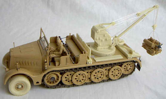Mit der Nummer 35001 findet sich der hochinteressante Resinumbausatz für den Tamiya FAMO zum 6t Kran auf FAMO (Sd.Kfz.9/1) vom neuen Hersteller Calibre35. Das Set stellt den Prototypen dieses Bergewagens und somit eine interessante Variante dar. Ein Blick in die Schachtel verspricht einiges gutes ... es finden sich 86 Resinteile, 9 PE Teile, Schnur für Darstellung von Stahlseilen und Kupferdraht. Die Gussqualität ist exzellent, weisen die Teile auch viele feine Details auf, so gibt es weder Verzug noch Lufteinschlüsse. Die Angüsse sind größtenteils sehr klein gehalten, so dass das Entfernen vom Gussast keine Probleme bereiten sollte. Selbst runde Teile (von denen es hier einige gibt) sind wunderschön rund und nicht eierig! Neben dem Krangestänge und Zubehör sind auch die ausfahrbaren Stützen im Set emthalten, die man wahlweise hoch oder abgeklappt darstellen kann. Man kommt in diesem Set aber nicht umhin das ein oder andere Loch zu bohren oder Griffe aus dem beiliegenden Draht zu biegen. Die Anleitung ist recht verständlich un dgut gezeichnet, auch wenn es auf vereinzelten Bildern etwas chaotisch zugeht. Die Anleitung vermittelt den Eindruck, dass der Kran (obwohl Resinumbausatz) komplett beweglich bleibt, da bewegliche Teile nicht geklebt sondern mit Steckbolzen versehen werden. Ob dem wirklich so ist muss in einem ausführlichen Baubericht geklärt werden. Bei einem Preis von etwa 44,95 Euro ist man für einen Umbausatz recht hoch, zumal das Basisfahrzeug auch nicht günstig ist, andererseits ist die Qualität der Teile und die Einzigartigkeit eines solchen Bausatzes sicher das Geld wert.