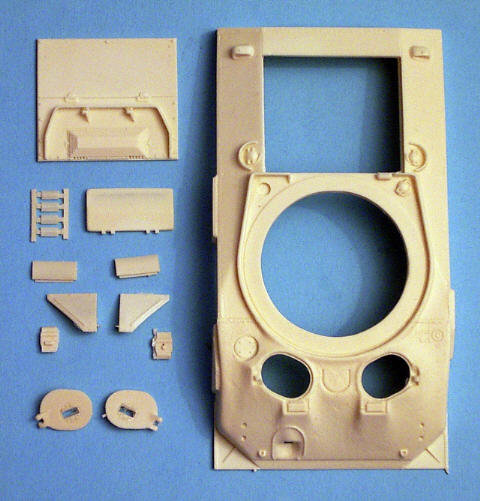 Doch die CMD Wanne ist derjenigen von Verlinden noch in zwei weiteren Punkten klar überlegen. So ist die CMD Wanne schon komplett versäubert und kann sofort verbaut werden, wohingegen bei Verlinden doch etwas kompliziertere Schleifarbeiten nötig sind. Ein weiterer Pluspunkt ist die Ausstattung des Sets - neben den entsprechenden Kotflügeln und Luken samt Winkelspiegeln hat CMD im Gegensatz zu Verlinden das Motordeck seperat ausgeführt, so daß der Modellbauer weiterhin die Option hat, einen Motorraum einzubauen.