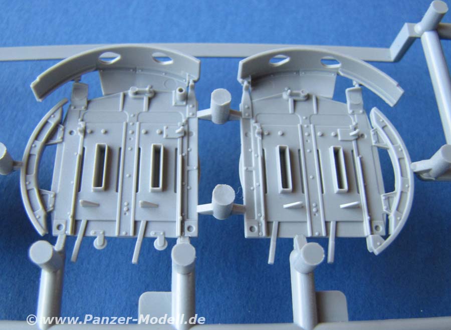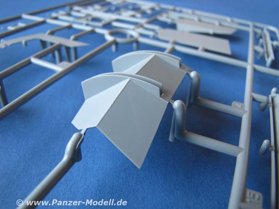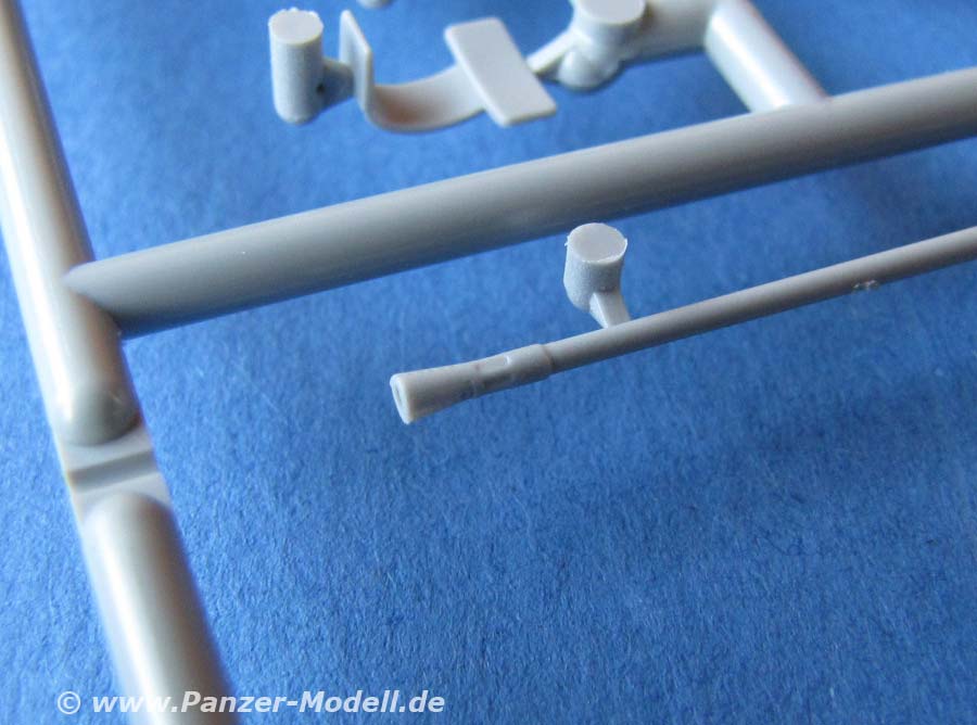 Der Flakvierling an sich ist bereits vom Sd.Kfz.7/1 und dem Einzelgeschütz bekannt und ist supersauber und detailiert dargestellt. Dür dieses Modell sind einige Zusatzteile enthalten, wie die Querträger auf denen das Geschütz ruht, sowie die Schutzplatten. Die Rohre für den Vierling bestehen aus Plastik - dafür sehen sie gut aus, aber in Metall sind die einfach um Längern besser!