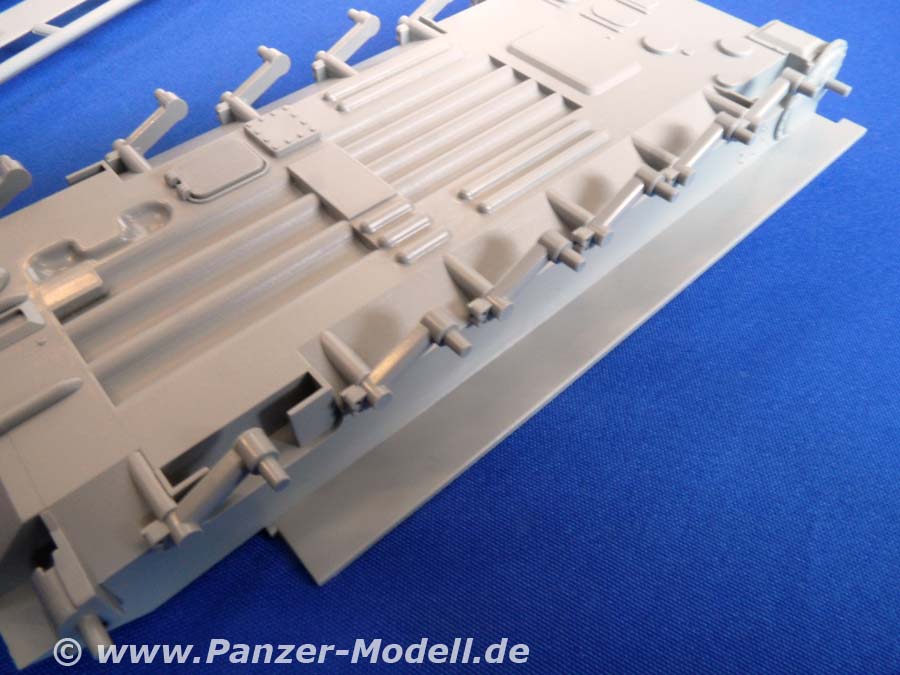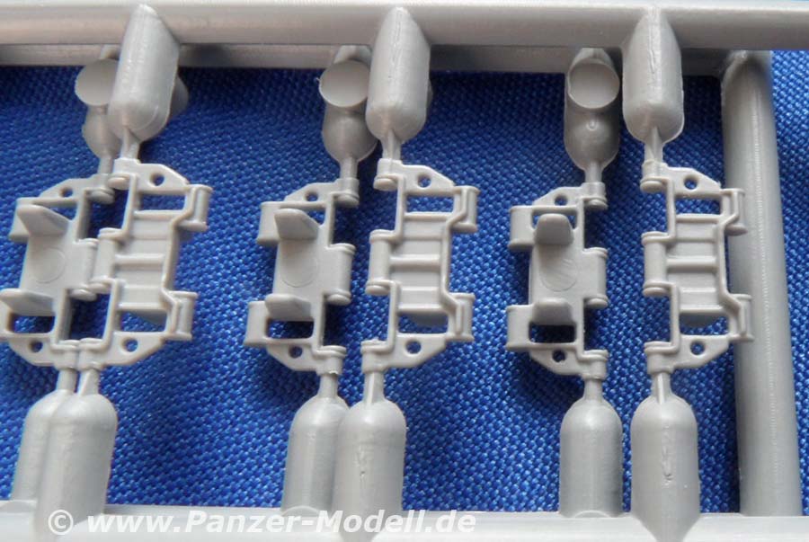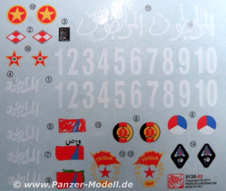 Alle Luken des Panzers können offen dargestellt werden und laden geradezu zu der Inneneinrichtung von Tracks ein, wenn man sie denn noch irgendwo her bekommt. Die Vierlingsflak ist höhenrichtbar und soweit ganz ordentlich detailiert. Nur die Rohre sollten unbedingt gegen die RB-Rohre ausgetauscht werden. Ansonsten ist der Bausatz sehr übersichtlich und leicht zu bauen. Das Highlight sind aber sicherlich die Decals! Nicht weniger als neun (9!!!) Versionen sind enthalten! U.S.S.R, Irak, NVA der DDR, NVA Nordvietnam, Libanon, Czechoslowakia, Polen, Ungarn und Syrien. Damit kann das Fahrzeug in fast jeden größeren Konflikt der letzten 40 Jahre eingebaut werden! Die vier Figuren sind alte und gute Bekannte. Ursprünglich als Besatzung für einen BTR gedacht passen sie aber auch zu allen anderen Fahrzeugen. Und wer keinen Russen baut hat noch was für die Restekiste!