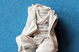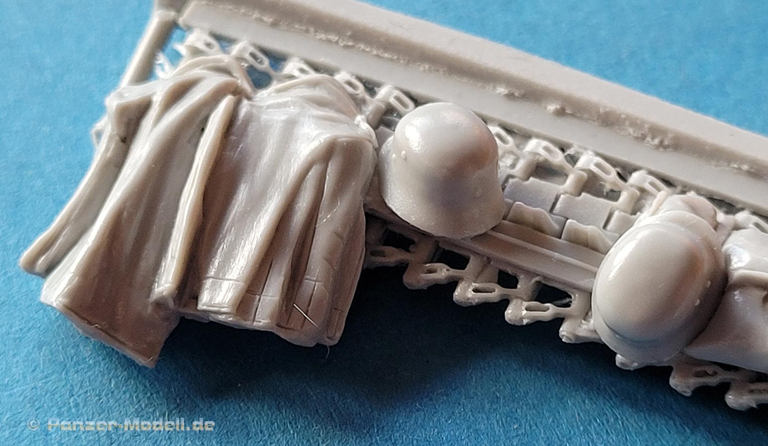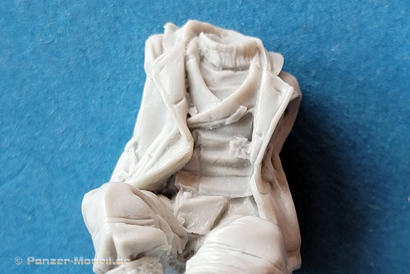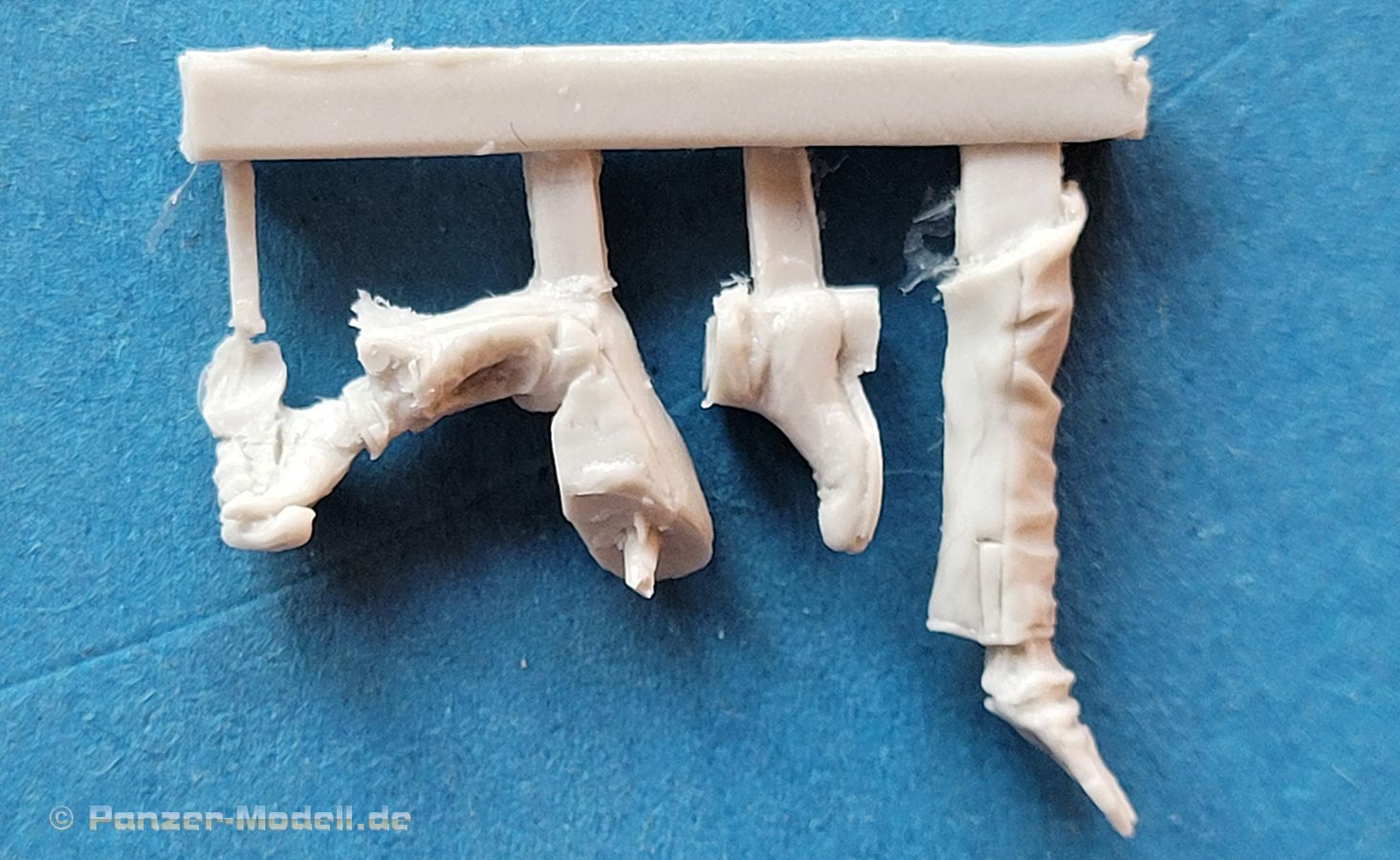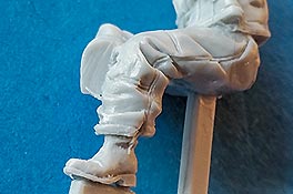Die Figuren bestehn aus nur wenigen Teilen - die Körper sind in der Regel in einem Stück komplett gegossen und müssen nur noch durch Kopf und Arme ergänzt werden. Dabei ist der Guss wie gesagt sehr gut und sehr fein detailliert, wobei bei Nahansicht fallen feine Resinfussel an den Gusskanten auf, die man ggf mit einem Schleifvlies schnell entfernen kann.