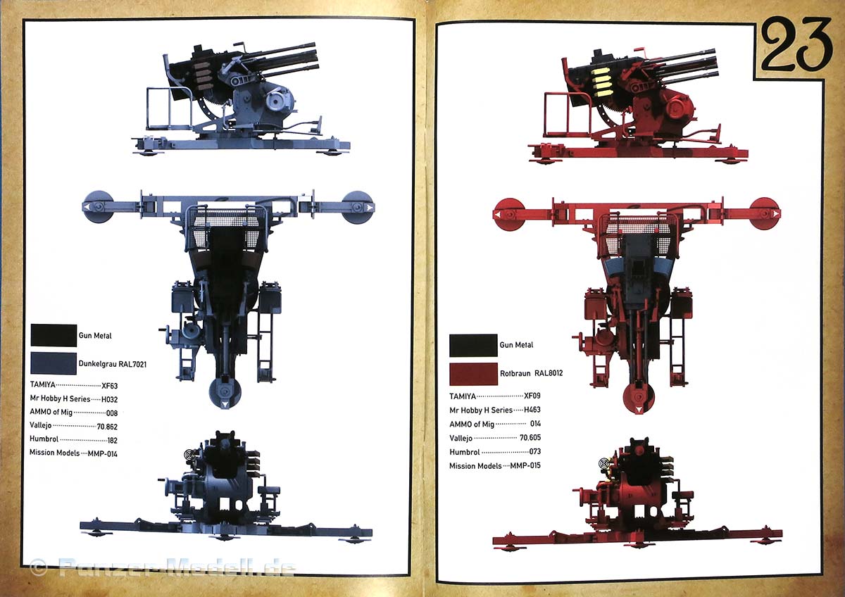 Am Ende gibt es zwei farbig gedruckte Seiten mit zwei Farbprofilen - einmal in rotem Primer und einmal in dunkelgrau.