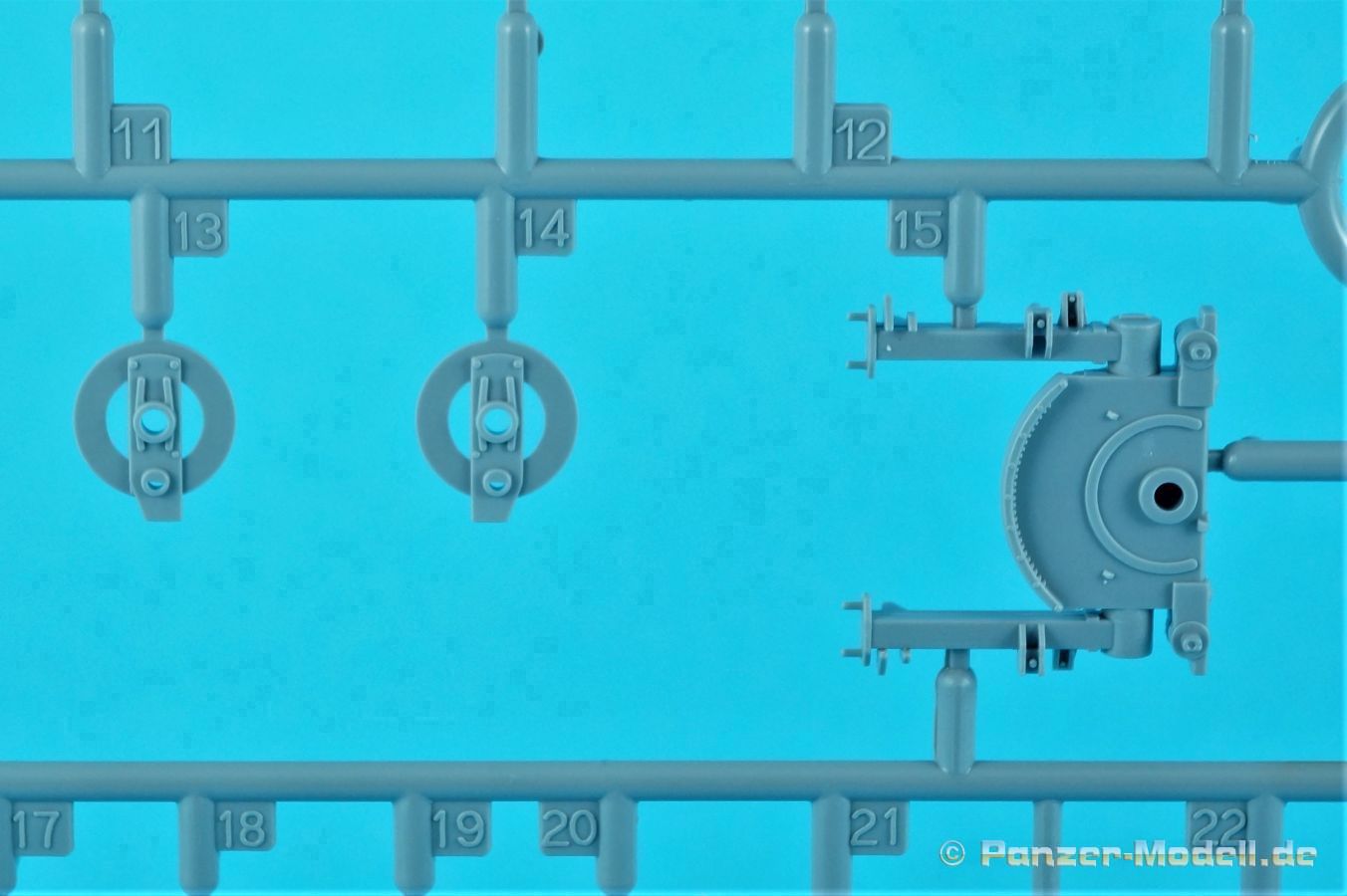 Zum Original werde ich mich hier nicht groß auslassen. Im Februar 1942 bei der Truppe eingeführt wurden rund 23.300 Stück gebaut. Lange Zeit war dieser erstklassige Kit, seinerzeit von einem Hersteller aus Asien entwickelt, vom Markt verschwunden. Das Werk bringt nun die PaK wieder auf den Markt in Kooperation mit eben diesem asiatischen Hersteller. Sehr löblich!!! Der stabile Karton mit Stülpdeckel, wieder mit einer erstklassigen “Boxart” versehen, beinhaltet fünf hellgraue Spritzlinge, vier Vinylreifen, eine kleine PE-Platine, Decals und die Bauanleitung.