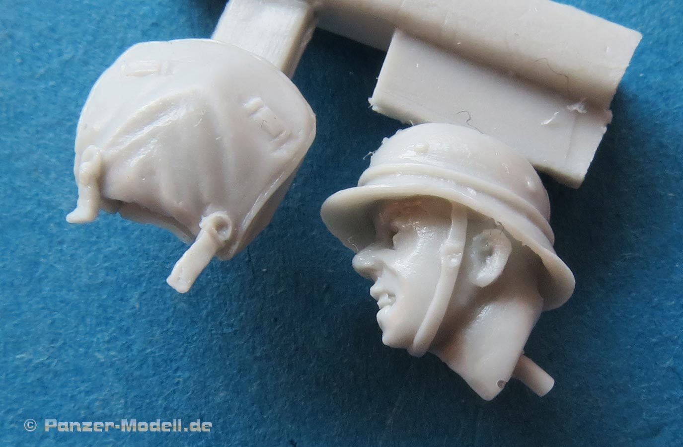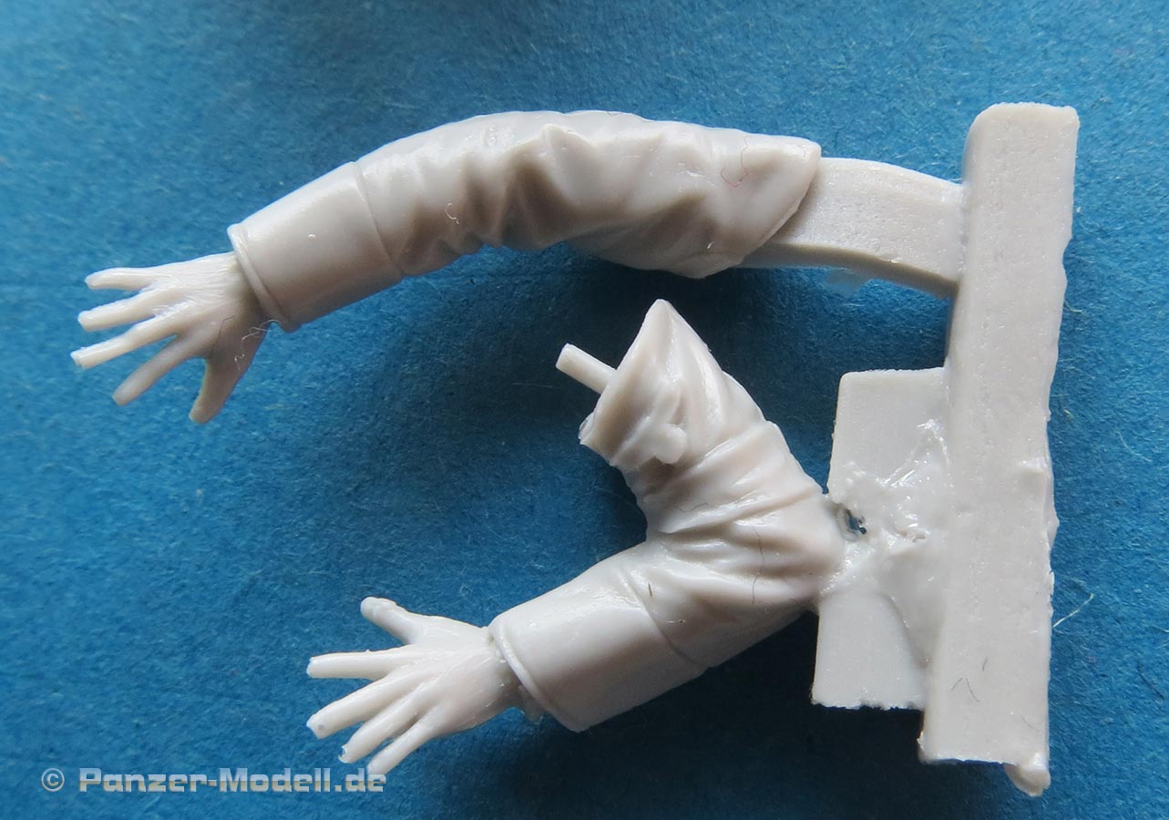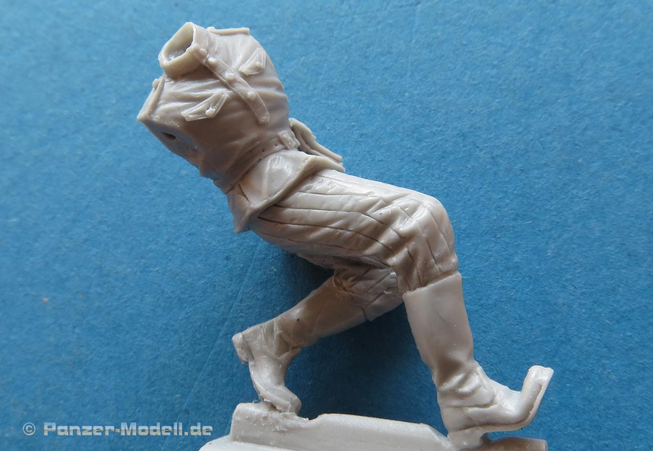 Die Figuren müssen in der Regel nur noch mit dem Kopf und beiden Armen sowie Zubehör wie Klappspaten, Taschen oder auch Waffen wie Panzerfaust, MP40, Karanbiner oder auch PPSch. Die Handwaffen sind auch sehr fein und detailliert gegossen, wobei beim Karabiner sich eine leichte Biegung feststellen lässt. In heißem Wasser sollte sich das aber wieder richten lassen.