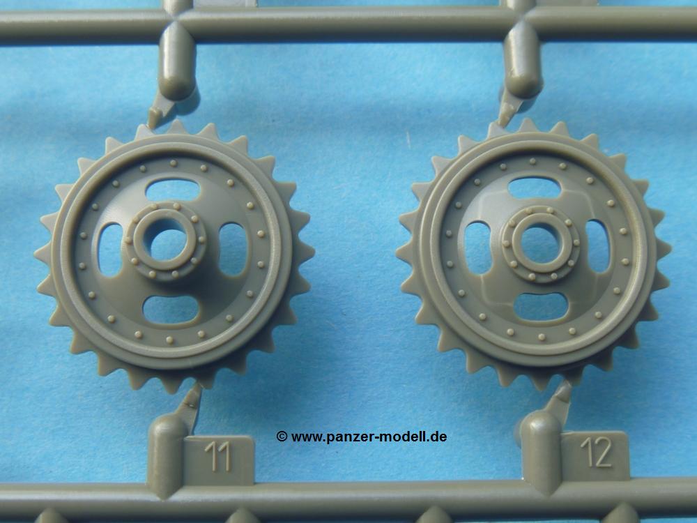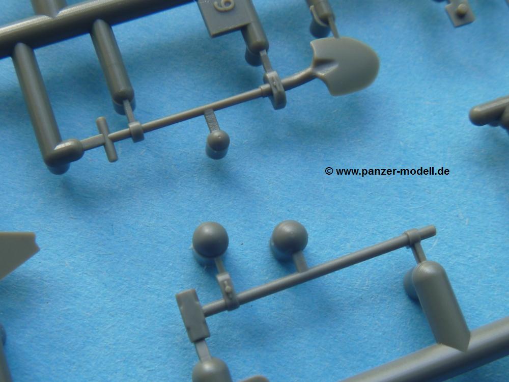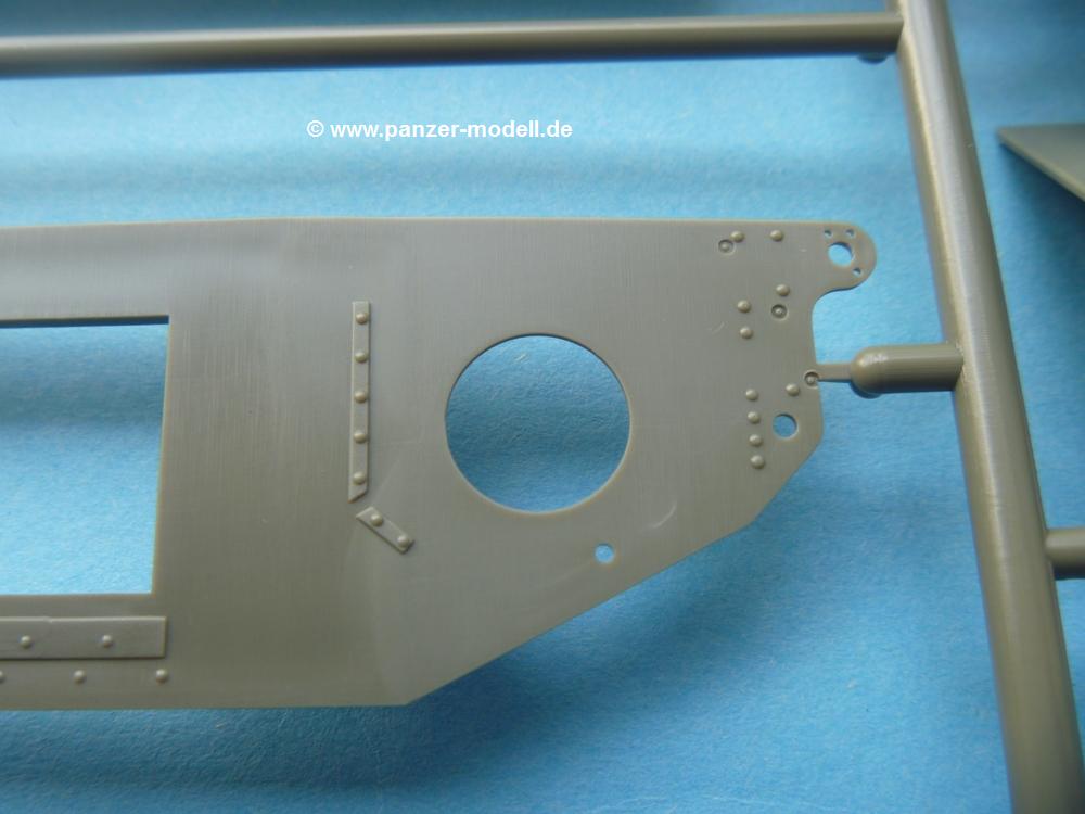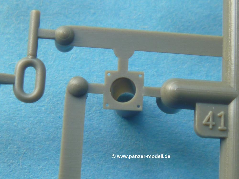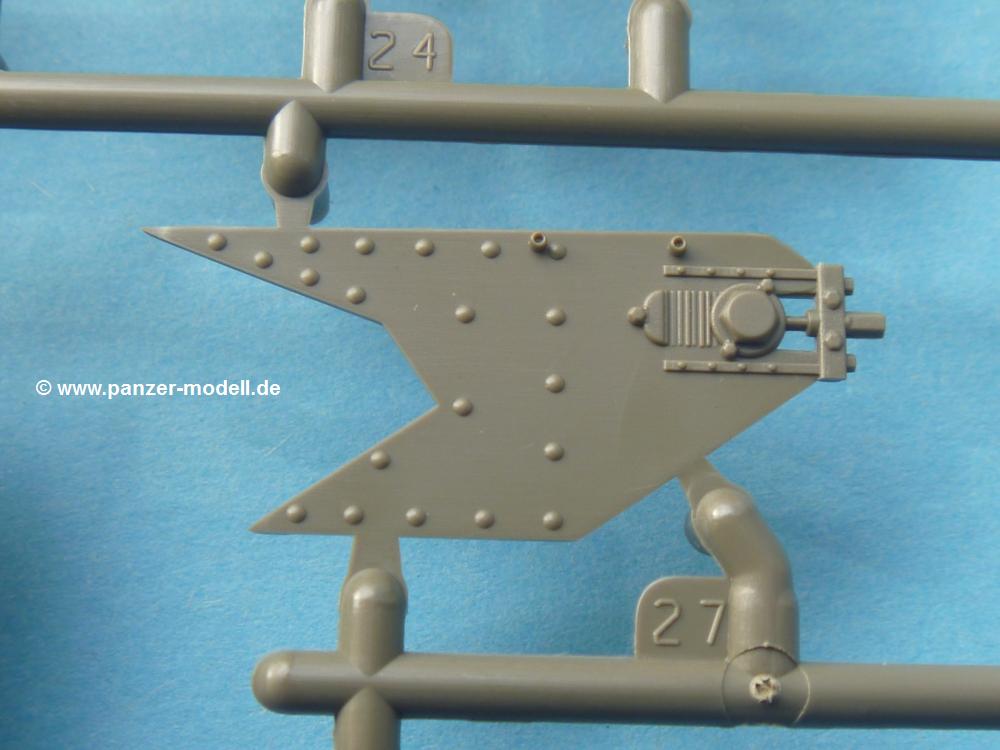 - A (1x): Bodenplatte, untere Heckplatte, innere Fahrwerksseitenteile, Auspuff und -abdeckung, innere Kettenspanner, vordere/hintere Kettenbleche, Seitenluken, Kanone, Kanonenblende, Bug-MG Halterung