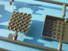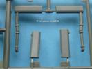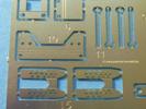 Die Teile für den Snake bestehen zum einen aus der, über die gesamte Breite gehende, Grundplatte, die mittels 2 dicken Bolzen am Heck befestigt werden. In der Grundplatte sehen wir auch die Enden der Bangalore Torpedos, die alle mit Zündkabeln aus der PE Platine GG versehen werden. Links und rechts werden jeweils 2 F-förmige Halterungen angesetzt. Hier werden dann die Bangalore Torpedo Pakete eingeschoben und mit der Heckplatte verbunden. Die Pakete bestehen aus 4x 4 Halbrohren, die aber so zusammengeklebt werden, dass man von jeder Seite 5 sieht. Das vordere Ende wird mit den Torpedoköpfen geschlossen. Wäre nicht das komplexe Fahrwerk, hätten man mit wenigen Teilen eine außergewöhnliche Version des Churchills.
