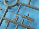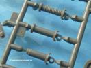 Im Karton finden wir 17 olivgrüne und 1 glasklaren Plastikspritzling, 1 kleinen schwarzen Vinylspritzling, 2 Vinylketten, 22 Stahlfedern, 1 Bindfaden, 4 Ätzteilbögen, einen Abziehbilderbogen (Decals) und eine 16-seitige Bauanleitung.