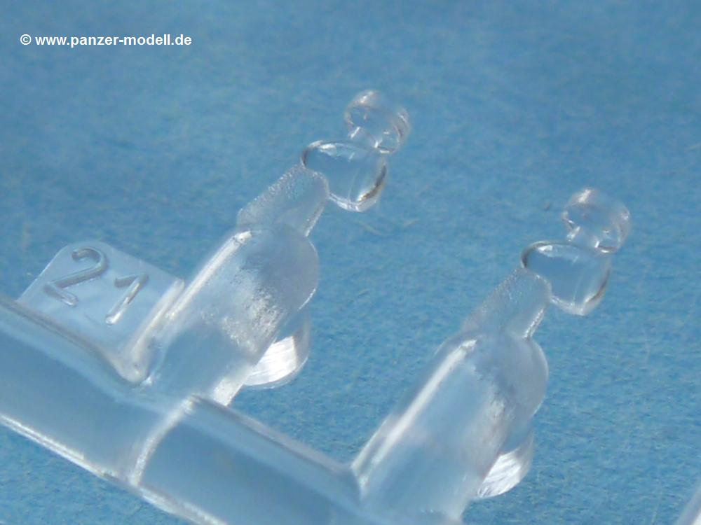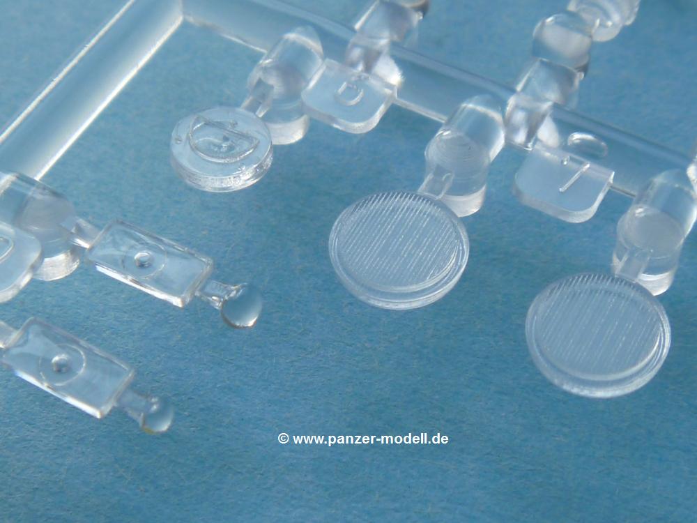 Die Teile sind sauber gespritzt, ohne Versatz, keine Fischhäute. Auswerferspuren, sofern überhaupt vorhanden, sind flach und nur an Stellen zu finden, die nach dem Zusammenbau nicht zu sehen sind (z.B. Innenseiten von Gehäusen)
