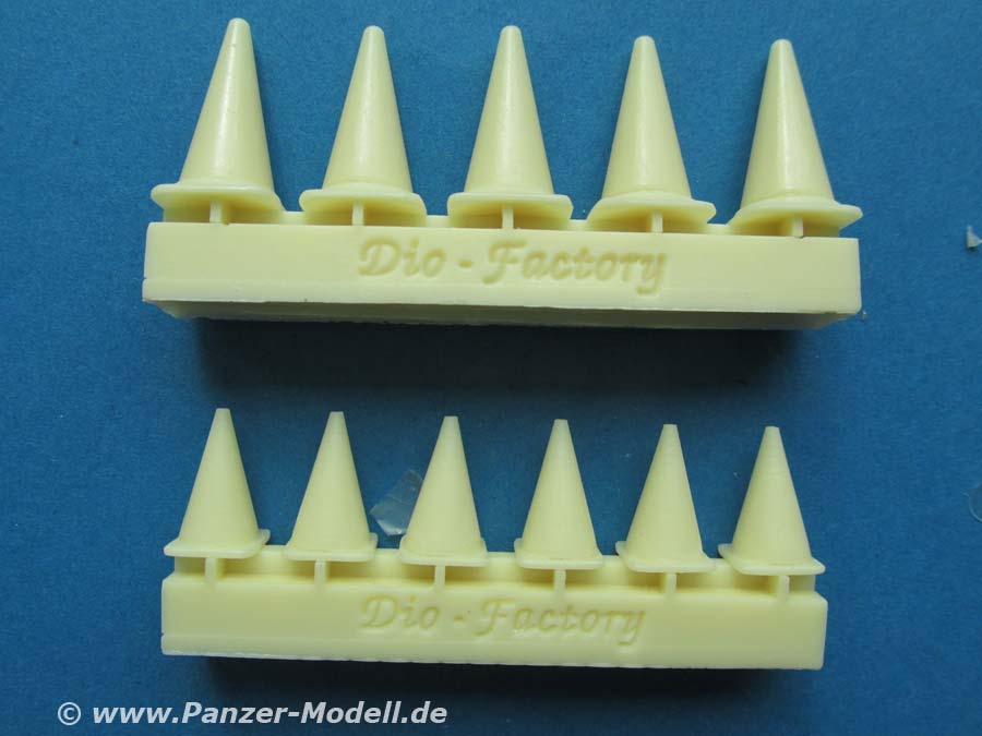 Im Set finden wir 2 Angussteile mit insgesamt 11 Resinteilen entsprechender Leitkegel.