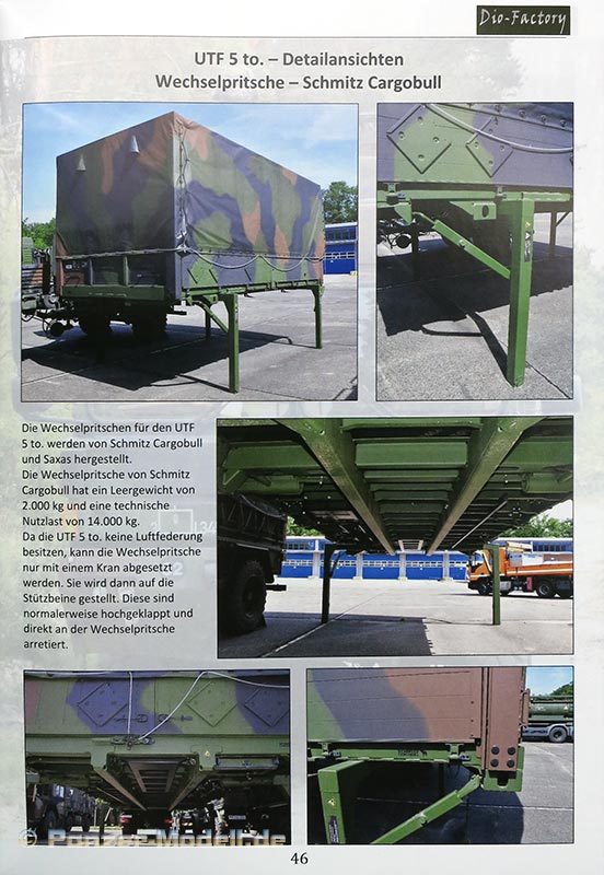 Nach einer längeren Pause erscheint im März 2025 endlich das vierte Heft der WalkAround-Reihe. Wie man es von einem "WalkAround"-Heft erwartet, steht die Bilddokumentation im Vordergrund und das 82-seitige A4-Heft enttäuscht in dieser Hinsicht nicht: Mit 291 durchweg farbigen und gestochen scharfen Fotos bietet es jede Menge Anschauungsmaterial. Die Bilder werden durch informative Bildunterschriften in deutscher Sprache ergänzt, sodass auch technische Details und Besonderheiten nicht zu kurz kommen. Die vierseitige Einleitung liefert einen fundierten Überblick über die Entwicklung und Beschaffung beider Fahrzeugtypen. Es werden markante Merkmale und technische Daten beleuchtet inklusive einer übersichtlichen Tabelle, die die Beladungskombinationen verschiedener Pritschenvarianten und deren Verfügbarkeit auf beiden Fahrzeugmodellen zeigt. Im Anschluss folgen 18 Seiten mit Gesamtansichten des UTF 5t in unterschiedlichsten Einsatzszenarien und Beladungsvarianten, darunter Pritschen, Container, Wechselladepritschen (WLP), Kabinen und mehr. Daran schließen sich zwölf Seiten mit Detailaufnahmen der Fahrerkabinen des UTF 5t und UTF 15t an inklusive der FLW 100 (Flugabwehrleichtwaffe 100). Alle Bilder sind ausführlich beschriftet und liefern wertvolle Hinweise zu den gezeigten Elementen. Weitere zwölf Seiten widmen sich den äußeren Details des UTF 5t. Vom Container-Tragrahmen über die Wechselpritsche bis hin zur Scheibentarnung wird jeder Bereich gründlich dokumentiert und erläutert. Es folgen 16 Seiten mit Gesamtansichten des UTF 15t analog zur Bildstrecke des UTF 5t. Die vierachsige Variante wird in verschiedenen Einsatzsituationen mit unterschiedlichsten Beladungen und Ladesystemen vorgestellt. Daraufhin bietet das Heft acht Seiten mit Nahaufnahmen relevanter Fahrzeugbereiche des UTF 15t, ergänzt durch präzise Bildunterschriften. Nochmals acht Seiten präsentieren Detailansichten des Container-Tragrahmens, Pritschen von Saxas und Schmitz-Cargobull, einem 20-Fuß-Container der BKS Luna sowie dem Rüstsatz „mobile Feldküche“. Abgeschlossen wird das Heft mit einem Ausblick auf kommende Entwicklungen: Eine Konzeptzeichnung zeigt den zweiachsigen UTF 3,5t das potenziell nächste Mitglied der UTF-Familie. Fazit: Ich bin schon gespannt, was uns dann als nächstes WalkAround angeboten wird. Der Preis beträgt EUR 17,95 (zzgl. Versandkosten) direkt ab Dio-Factory. Vielen Dank an Sven Eckelkamp für die Zusendung des Musters!