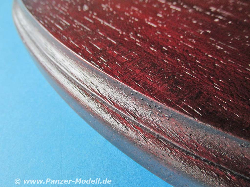 Er weist dazu eine sehr schöne und optisch ansprechende Maserung auf. Die Profilkante ist ebenfalls sehr schön und sauber gearbeitet, was gerade bei gerundeten Sockeln eine aufwändige Arbeit ist.