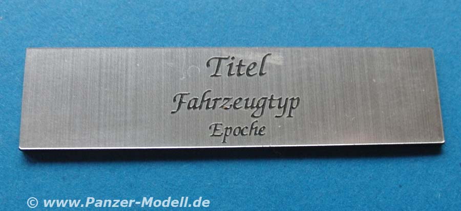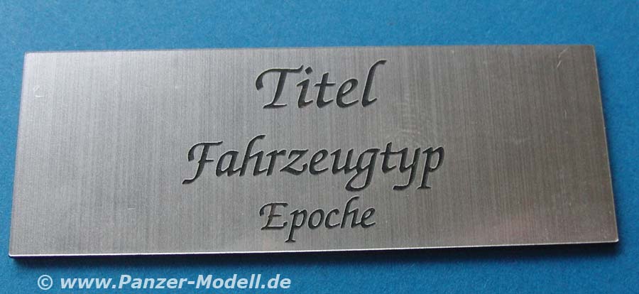 In diese können drei Zeilen Text in der Schriftart "Zapf Chancery Medium Italic" eingelasert werden. Die Ausführung ist absolut scharf und sauber. Die Buchstaben sind demzufolge vertieft und schwarz unterlegt.