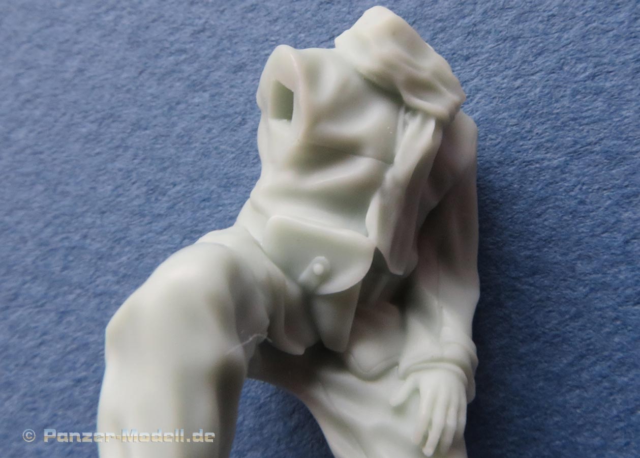 Der Guss der Figuren und Einzelteile ist gut mit schönen Details - die typischen Uniformen der französischen Panzertruppe um 1940 sind gut dargestellt. Der Faltenwurf ist realistisch und fein dargestellt.