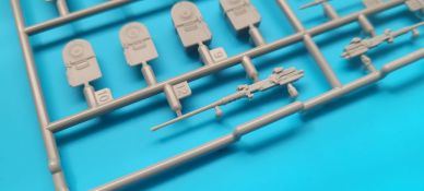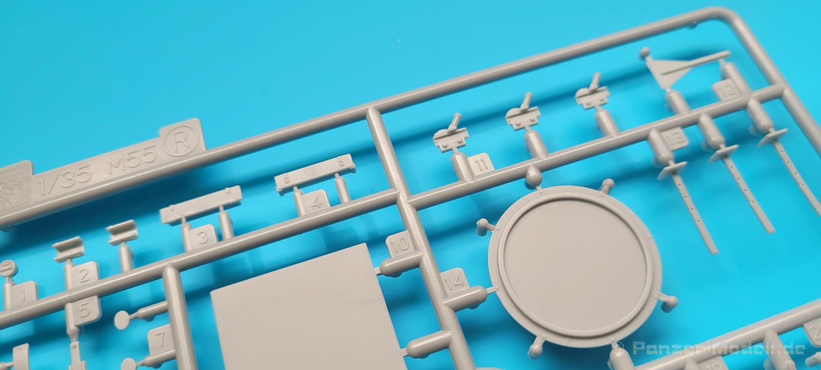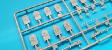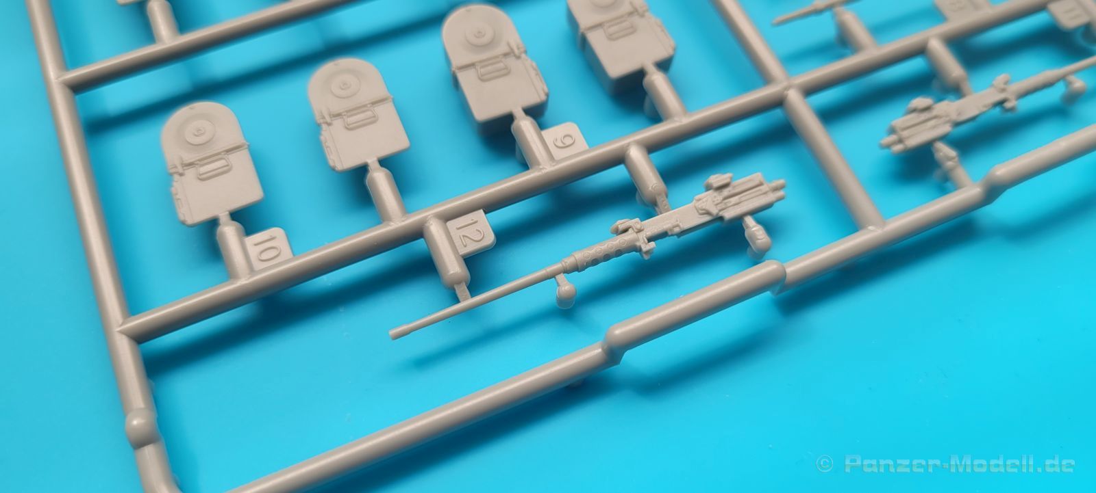 An den fünf sauber gespritzten grauen Gussästen und dem klaren Gussast finden sich feine und schön gravierte Bauteile, diese überzeugen auf ganzer Linie.