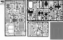 Luftauslassblech mit Haltern, Lüftergitter, Werkzeughalter, Kettenblech Halter, Periskope, Ösen, Kistendetails, Lukeninnendetails, Kettenabdeckblechnieten und Versteifungen, Tankhalter, MG Halter, Turmluken-Ringe |