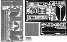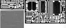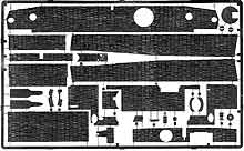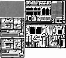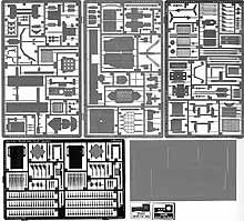 Lüftergitter, Werkzeughalterungen, Beschläge, Lampendetails, Periskopabdeckungen, Kanisterhalterungen, Türbeschläge, Munitionszuführungen, Kanonenabdeckungen. |