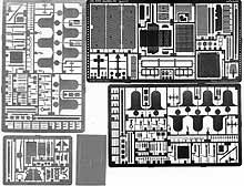 Heck des Fahrzeugrahmens, Riffelbleche an den Einstiegen, Teile für die Detaillierung der Fahrerkabine, Scheiben und Rahmen für das Ausstellfenster, Türdetails (innen und aussen), Winker, Lüftungsklappen (Motorhaube und Fußraum Kabine), Kanisterhalter, Verdeckspriegel, Ösen zur Verdeckzurrung, Schmutzfänger, Kolonnenfahrgerät, Nietenbleche für den hinteren Raum, Kette für den Einstieg in den hinteren Raum