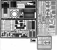 Viele Motordetails (Leitungen, Kabelage, Verschraubungen, etc), Lüfter, Verstrebungen, Fahrerplatzarmaturen, Halterungen, Lukendetails, Lüftergrille, Turmtechnik, Kanonendetails (Hülsenfangkorb, Hebel, Beschläge, Griffe, etc), Periskope, Staukästen, ... |