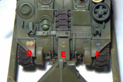 Schwieriger gestaltet sich hier schon das Aufbringen der Divisionsabzeichen ("F"). Hier werden in bis zu vier Arbeitsgängen erst der Rahmen (Masking Film), die Innenfläche (Masking Film) und schließlich das eigentliche Abzeichen (Ätzschablone) aufgebracht. Während des Arbeitsvorganges bekommt man zwar jede Menge Adrenalin, aber wenn man die Abdeckungen entfernt, dann wird man mit erstklassigen Abzeichen belohnt, die man so als Abzehbild eh nicht bekommt!