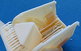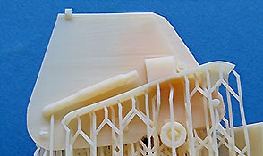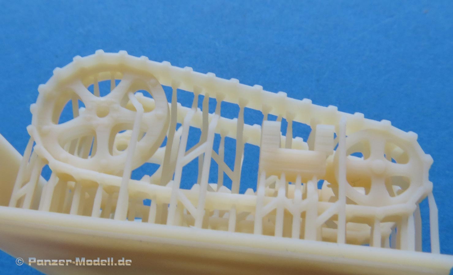 3D-Druck macht es möglich - wir haben einen „Bausatz“ der Firma FC Model Trend in 1:35 vor uns, der aus weniger als 10 Teilen besteht und das trotz Kettenlaufwerk. Typisch für 3D-Druck gibt es viele Stützstrukturen, die den Blick auf die eigentlichen Teile etwas verwehren. Die Kontaktstellen sind jedoch klein und fein gehalten, so dass nach dem Abtrennen die Versäuberung sich in Grenzen halten sollte. Damit man nicht etwas abschneidet, was keine Stützstruktur ist, sollte man sich Bilder vom Original besorgen, denn eine Bauanleitung gibt es nicht. Wie gesagt, es gibt nur wenige Teile - das Kettenlaufwerk ist jeweils in einem Teil gedruckt und weist hierbei schöne Details der Laufrollen und Kettenglieder auf. Es gibt zwar keine Bauanleitung, aber die paar Teile sollte man trotzdem gut zusammenbekommen, wenn man beim Abtrennen von den Stützstrukturen nicht zu viel abschneidet. Zur Bemalung gibt es leider keine Hinweise. Jetzt fehlt nur noch eine passende Figur, die dieses Gerät bedient - es wäre auf jeden Fall eine starke Bereicherung für ein Diorama. Insgesamt recht erfreulich was uns der 3D Druck von FC Model Trend hier zu bieten hat.