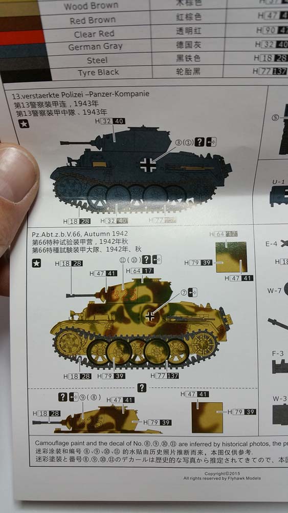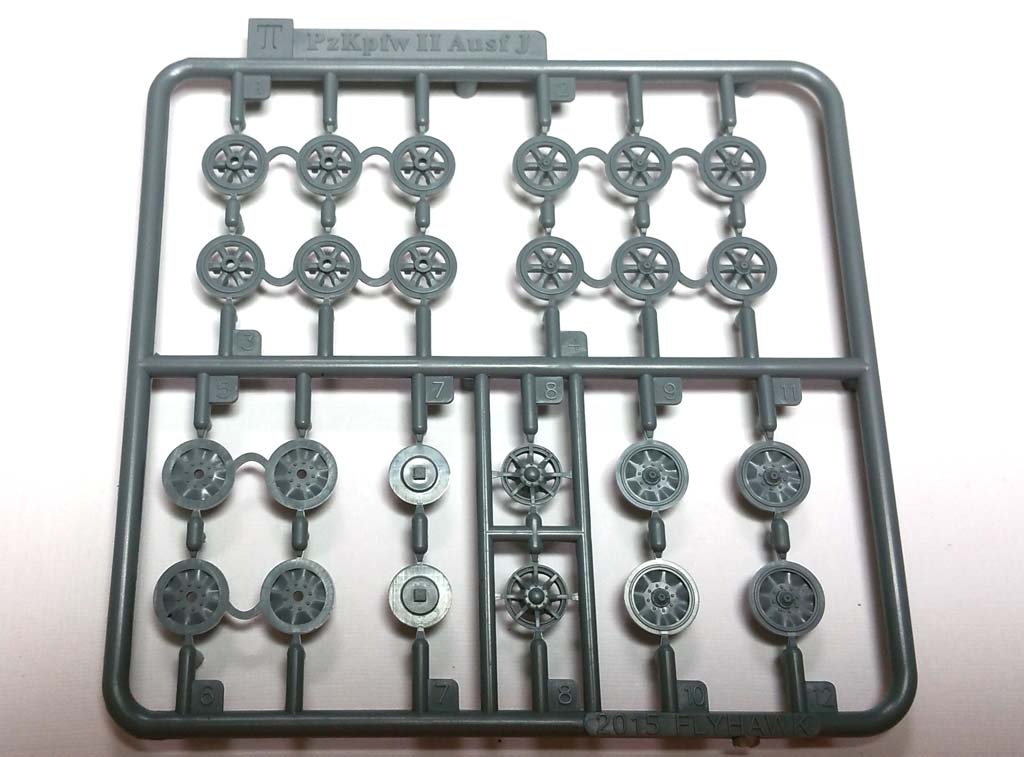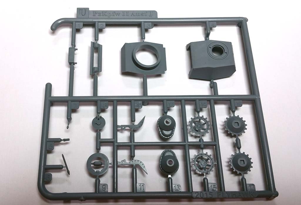 In diesem Fall kommt der geneigte Panzer Modellbauer allerdings in den Genuss eines AFV Bausatzes aus China; den Pz.Kpfw II Ausf. J (VK 16.01) IN 1:72 mit der Nummer 3005. Wenn auch nun überhaupt nicht mein favorisierter Maßstab, wenn es um Panzer geht, so ist dies doch ein wunderbarer, und für diesen Maßstab, unglaublich detaillierter Bausatz! Und nicht nur das, die Ausführung der Spritzlinge und gerade die Verpackung halte ich persönlich für absolut vorbildlich. Davon könnte sich so mancher Hersteller eine Scheibe abschneiden. Unter dem ansprechenden Deckelbild verbirgt sich ein stabiler Karton, der keine Wünsche offen lässt. Vor allem nicht der Inhalt! Die Anleitung ist ein mehrfarbig bedrucktes, hochwertiges DIN A4 Papier, das in acht Schritten zum Ziel führt. Farbverweise gibt es für Gunze und Tamiya. Markierungsoptionen gibt es für zwei Fahrzeuge. Einmal ein in Panzergrau gehaltenes Fahrzeugs einer Polizei Panzerkompanie und ein in drei Farbtarn gespritztes Fahrzeug der Panzer-Abteilung 66 vom August 1942 an der Westfront. Die Kette ist eine Segmentkette, deren Qualität und Detaillierungsgrad, für mich keine Wünsche offen lässt. Ebenso wie die anderen Spritzlinge, ist das hier Spritzguss vom Feinsten! Über die Verarbeitung der Ätzteile und der Abziehbilder kann ich momentan noch nicht viel sagen, doch das was ich hier vor mir sehe, sieht ziemlich problemlos aus. Flyhawk halt.:) Doch wo Licht ist, ist auch Schatten. Spendierte Flyhawk dem Panzer 1 Modell noch gedrehte Rohre, so finden wir hier eines aus Plastik. Rohr und Mündungsfeuerdämpfer müssen zusammengeklebt werden. Auch hier hätte ich mir ein gedrehtes Rohr gewünscht aber das ist nörgeln auf hohem Niveau. Dafür ist die Passgenauigkeit der Teile absolut sahnig! Alles passt wie Arsch auf Eimer! Genauso wie der Panzerkampfwagen 1 und der FT-17, ist das hier ein wunderbares Modell in einem nicht ganz so gewöhnlichen Maßstab. Da bekommt man doch mal Lust auf Brille Scale! Hoch empfehlenswert! .
