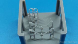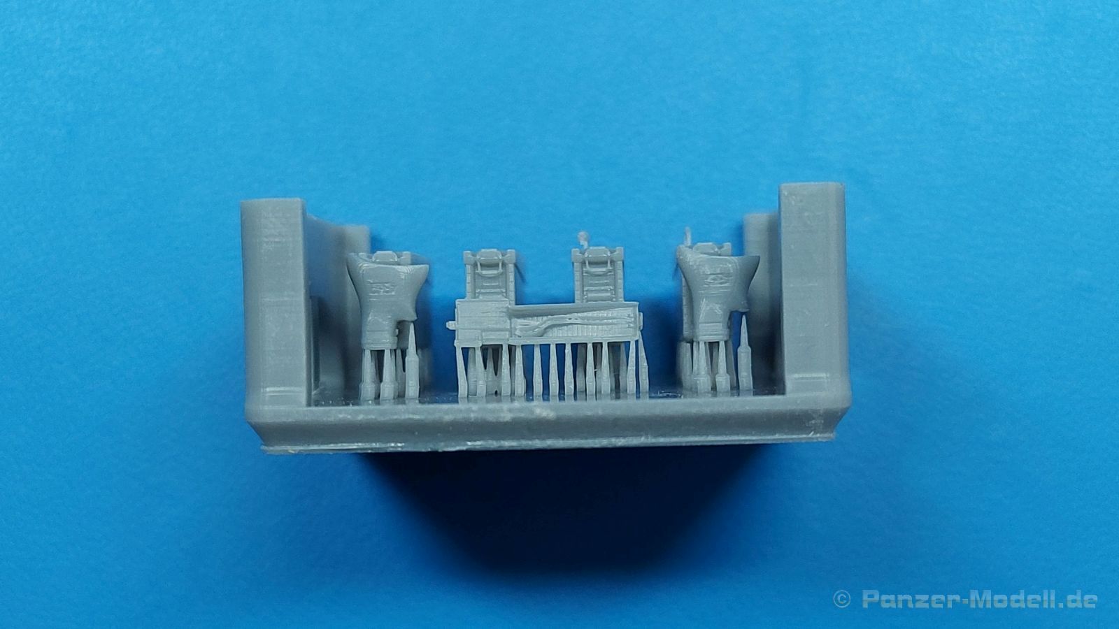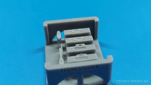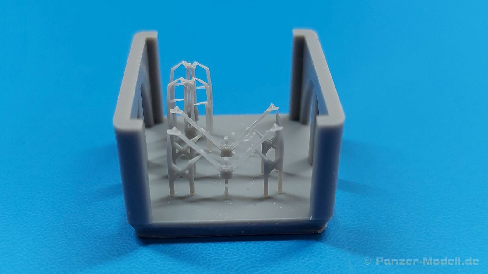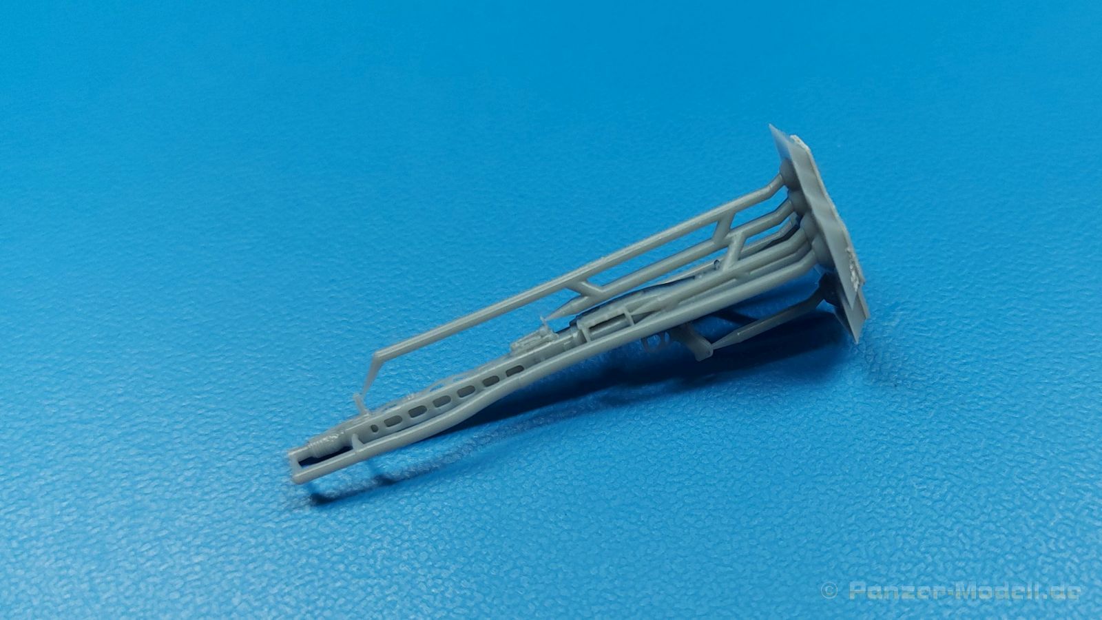 HD Models (Highly Detailed Models) aus Italien kann auch Waffen. 3D-gedruckt haben wir ein frühes MG42 vor uns. Die Teile kommen gut geschützt in einer Blisterverpackung und sind sauber gedruckt und müssen nur von den Stützstrukturen des 3D Drucks befreit werden. Die Stützstrukturen sind so fein, dass sich manche Teile bereits von Träger gelöst haben. Der Satz enthält 2 MG42, 2 Schulterstützen, 2 ausgeklappte Zweibeine, 4 zusammengeklappte Zweibeine, einen Verschlussdeckel und 4 Gurtkästen, verteilt auf 2 Druckträger und jedes MG extra. Ein MG ist mit geschlossenem Deckel und ausgeklappter Kimme und Korn dargestellt, das zweite ist ohne Deckel, Kimme und Korn eingeklappt. Details wie der Abzugsbügel, offener Rohrmantel, Rohrwechselklappe, Griffschalen, Schiebevisier und Rückstoßverstärker sind sehr fein und gut gestaltet. Der T-Griff für den Spannschieber ist wohl noch hinter den Stützstrukturen verborgen. Der Rohrmantel ist rechtsseitig etwas wellig. Die Mündungen sind offen dargestellt. Die separaten Schulterstützen sind glaubhaft in der Form und mit der Riffelung hinten versehen. Schaut man in den separaten Zuführerdeckel, entdeckt man die Kurvenschiene (Transportschiene), die vom Verschluss gesteuert den Gurttransport steuert. Die Zweibeine sind maßstäblich sehr gut gestaltet. Die Erdsporne gefallen mir gut, die Riegel, die das Zweibein zusammengeklappt am Rohrmantel halten, sind vorhanden. Vier Zweibeine sind zusammengeklappt, zwei ausgeklappt. Sogar die Rändelschrauben zwischen den Beinen sind vorhanden. Man könnte sie für Druckreste halten, gehören aber tatsächlich dorthin, wie Fotos im Netz beweisen. Vier schöne, individuell gestaltete Gurtkästen vervollständigen den Satz. Scharniere, Griffe und Riegel sind deutlich gedruckt. Zwei Kästen haben die Tragegriffe angeklappt, zwei sind ausgeklappt. Bei einem der ausgeklappten Griffe sind die Griffschützer auch vorhanden. Ein fantastisches Set, das eine Figur, ein Fahrzeug oder ein Diorama aufwertet! Der Preis mit über 18€ ist im Vergleich zu Plastik schon hoch, aber man bekommt auch was dafür.