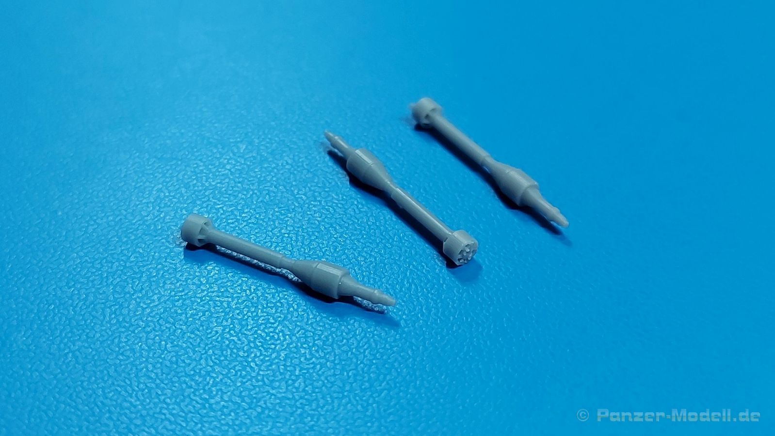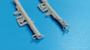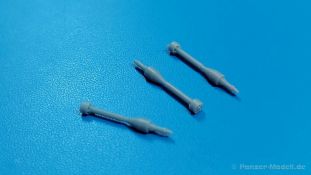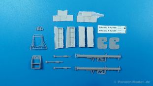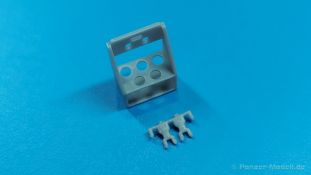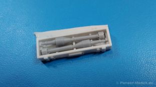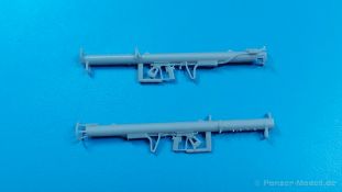 Das nächste Highlight von HD Models (Highly Detailed Models) aus Italien liegt vor uns. Ein 3D-gedrucktes Set mit Raketenpanzerbüchsen 54 (kurz RPzB 54), auch Panzerschreck genannt, und Kisten aus Resinguss ist heute Gegenstand unseres AUSGEPACKT. Die Teile kommen gut geschützt in einer Blisterverpackung und sind sauber gedruckt. Die Stützstrukturen sind bereits entfernt, aber hier und da sind minimale Reste davon zu finden, die man aber einfach entfernen kann. Der Satz enthält 2 RPzB 54, 1 Munitionsrückentragegestell, 2 geschlossene und 2 offene Munitionskisten mit Deckel, drei 8,8 cm Hohlladungsgeschosse und einen kleinen Decalbogen. Jeder Panzerschreck besteht aus einem Schutzschild und dem Abfeuerungsrohr (wegen Form und Größe von der Truppe auch Ofenrohr genannt). Am Rohr sind Visier (Kimme/Korn), Stütz-, Handgriffe, Abfeuerungshebel, Zündkabel, hinterer Schutzkorb und Schulterstütze bereits angedruckt. Die Details sind scharf und fein wiedergegeben. Leider war bei einem Rohr der hintere Schutzkorb ausgebrochen, aber dies sollte die Ausnahme sein. Zudem ist dieses Set bereits durch mehrere Hände gegangen, so dass die Beschädigung auch dabei passiert sein kann. Das Rohr ist durchgängig hohl, aber die beiliegenden Granaten sind leider etwas zu dick, um von hinten ins Rohr geschoben werden zu können. Die Schutzschilde sind beidseitig detailliert. Die Verstärkungsrippen sind nach vorn erhaben, nach hinten ausgehöhlt. Das rechteckige Visierloch ist sehr sauber. Die Schilde passen perfekt an die Rohre. Das Rückentragegestell ist dreiteilig. Das eigentliche Gestell mit Beckenstütze ist fein gedruckt. Der Einsatzkasten mit Öffnungen für 5 Geschosse muss nur noch mit dem Halter für die Geschossrohre versehen werden. Die Geschosse sind in Form und Aussehen gut getroffen. Die umrahmten Heckflügelchen gefallen mir sehr gut. Die Geschosse passen gut in Kasten und Halterungen. Die Munitionskisten sind aus Resin gegossen. Es gibt zwar eine Luftblase an einer Kiste und Gussreste. Diese sind dünn und sollten sich leicht entfernen lassen. Die Blase muss eben verspachtelt werden. Die geschlossenen Kisten müssten am Boden etwas geradegeschliffen werden, wenn man sie auf einem planen Untergrund platzieren will. Die offenen Kisten bestehen aus der Kiste selbst mit Innenleben zur Lagerung der Geschosse und dem Deckel, der auch Lagerleisten auf der Innenseite hat. Auch hier passen die Geschosse gut hinein. Bei allen Kisten sind Tragegriffe, Scharniere und Verschlüsse angegossen. Ein kleiner Decalbogen enthält Beschriftungen für die Kisten. Es gibt keine Anleitung zum Zusammenbau, aber das sollte bei den wenigen Teilen kein Problem sein. Eine Anbringungsanleitung für die Decals gibt es nicht. Da recherchiert man am besten selbst, was wohin kommt. Bei der Detaillierung hätte ich zudem Tragegurte für die Panzerschrecks und das Tragegestell erwartet, aber diese muss man selbst herstellen.