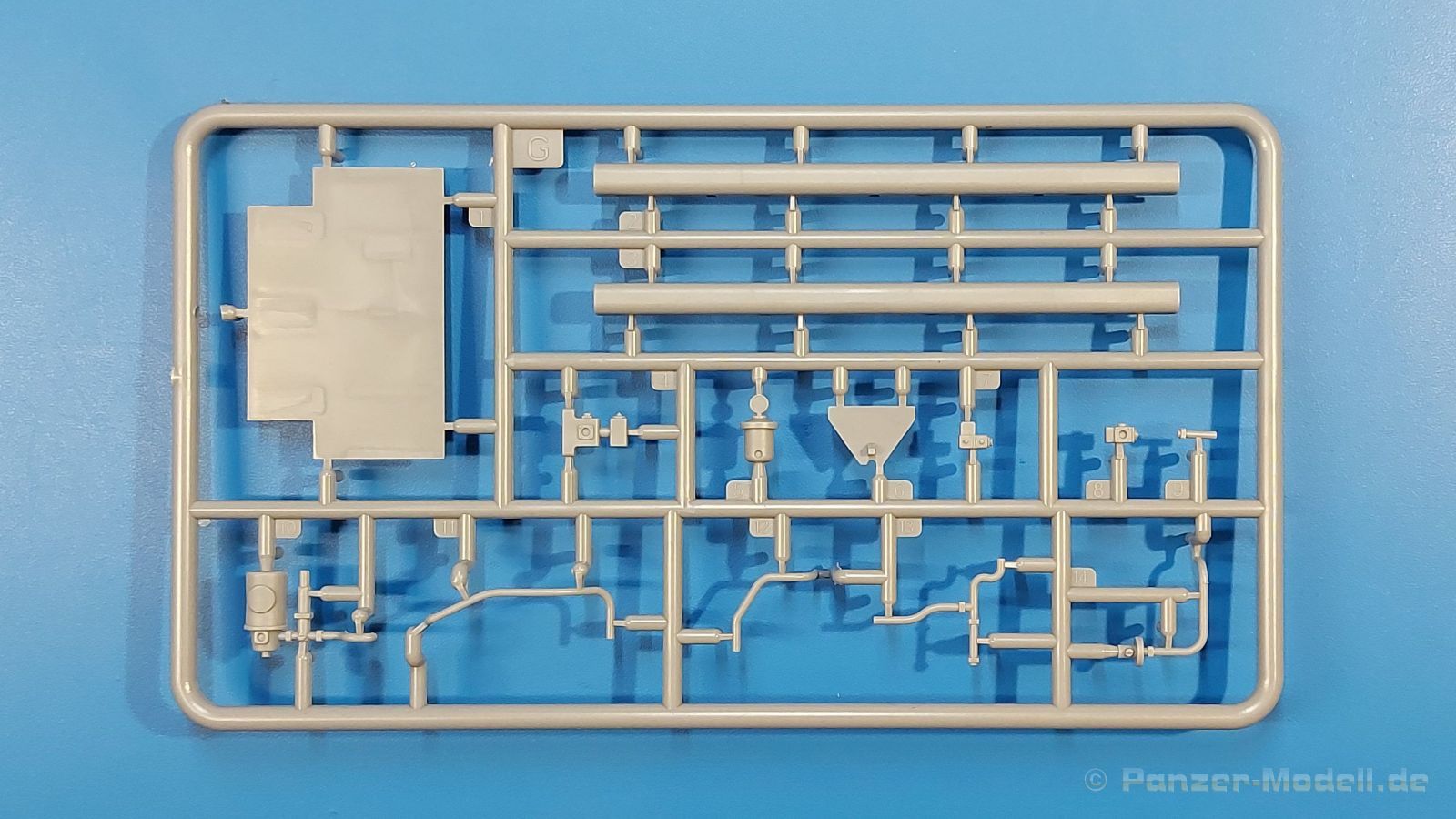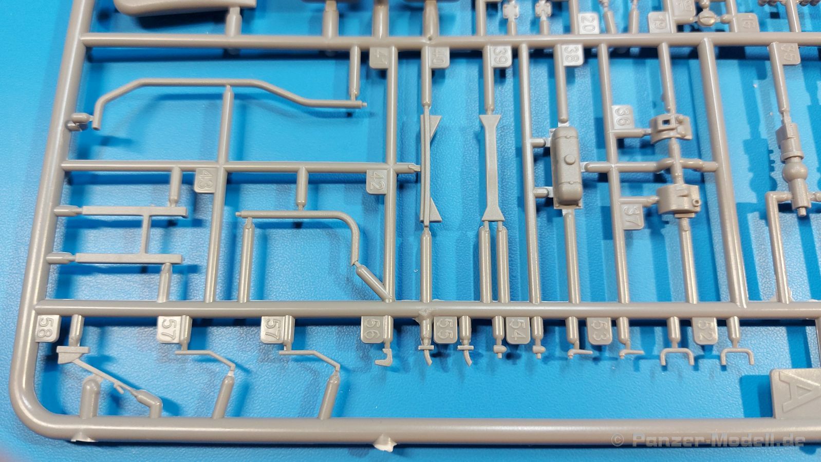 Das Original Der Bedford QL der gleichnamigen Firma Bedford gehörte zu einer Reihe von 3 to. Lkws, die zwischen 1941 und 1945 hergestellt und von den britischen Streitkräften im 2. Weltkrieg einsetzt wurden. Der QL Tanker war die Version eines Kraftstofftankfahrzeuges, welches hauptsächlich durch die Royal Air Force zum Betanken der Flugzeuge eingesetzt wurde. Der Tank fasste 950 Gallonen (ca. 4.319 Liter Umrechnung von britischen Gallonen in Liter). Der QL Tanker war natürlich auf Flugplätzen in England zu sehen, aber im Verlauf des Krieges auch näher an der Front wie z.B. in Belgien oder Italien. Der Bausatz: IBG Models führt seine Reihe des Bedford QL konsequent weiter und bringt als Nr. 5 einen QL Tankwagen auf den Markt. Im 405 x 258 x 60 mm großen Karton mit Stülpdeckel entdecken wir ein paar alte, bekannte und natürlich neue Spritzlinge. Insgesamt sind 9 graue Spritzlinge (Spritzlinge A und B sind bereits aus vorangegangenen Bedford QL Bausätzen von IBG bekannt.), 1 ebenfalls bekannter Klarsichtspritzling (Achtung: Ansicht in der Teileübersicht in der Bauanleitung entspricht nicht dem im Karton enthaltenen!), 1 PE-Platine, 1 Decalsheet und die Bauanleitung enthalten. Die Teile aus mittelgrauem Plastik sind größtenteils sauber ausgespritzt, ohne Grat und Versatz. Die Auswerfer sind meist auf den Spritzrahmen platziert. Leider finden sich an den Innenseiten der Blattfederpakete (Teile A13-A16), auf den Scheinwerfern (Teile B53, B54) und am Teil B72 Sinkstellen, die man außer bei den Scheinwerfern ggfs. ignorieren kann, weil sie am fertigen Modell nur schwer einzusehen sind. Die Klarsichtteile sind kristallklar ohne Kratzer oder Schlieren. Am Spritzling A finden wir die Hauptkomponenten des Fahrerhauses. Die Türen sind an den Seitenteilen fest angegossen. Innen sind die Fensterkurbeln bereits vorhanden, außen werden die Türgriffe noch angebracht. Aus den Klarsichtteilen werden nur die 2 Windschutzscheiben und die Türscheiben gebraucht. Bei den Türscheiben wurde auch das dreieckige Ausstellfenster bedacht. Man muss nur den Rahmen entsprechend in Fahrzeugfarbe bemalen. Das sehr gut getroffene Kühlergitter an der Frontseite ist auch fest eingegossen in die Front. Als Dach ist für den Tanker nur das geschlossene zu verwenden. Das ebenfalls vorhandene Dach mit der runden Öffnung wandert in die Ersatzteilkiste. Alle Pedale, Schalt- und Feststellbremshebel sind da und machen sich gut. Die Armaturentafel beim Original ist spartanisch eingerichtet, aber dennoch gut im Modell wiedergegeben. Der Feuerlöscher ist einfach gehalten, aber akzeptabel. Er verschwindet hinter dem Fahrersitz ohne weitere Aufmerksamkeit zu erregen. Bei den 3-teiligen Sitzen (Rückenlehne, Bodenplatte, Sitzpolster) gefällt mir die angeraute Oberfläche der Sitzpolster, die somit etwas Stoffstruktur wiedergeben. Der Fahrerhausboden hat die Motorabdeckung bereits integriert, so dass man den Motor nur zeigen könnte, wenn man das Fahrerhaus nicht festklebt. Die an den Ecken gerundeten, größeren Außenspiegel in der Form wie im Bausatz sieht man oft an restaurierten Fahrzeugen. Auf Fotos aus den 40 Jahren sind sie eher kleiner und viereckig. Auf den Kotflügeln des Fahrerhauses befinden sich Trittstufen mit feiner Antirutschriffelung. Zum ersten Mal ist eine PE-Platine im Bausatz, die auch das oft gesehene Gasdetektorblech samt Halterungen enthält. Auch ein großes Unterbodenblech, vermutlich um Motorwärme vom Tank fernzuhalten, ist dabei. Der Leiterrahmen besteht aus mehreren Längs- und Querträgern. Der 6-Zylinder Benzinmotor ist mit allen wichtigen Bauelementen (Motorblock, Zylinderkopf, Ölwanne, Anlasser, Generator, Vergaser, Zuluft-, Abgaskrümmer, Keilriemenscheiben mit Keilriemen, Lüfterpropeller) wiedergegeben. Kupplungsgehäuse und Schaltgetriebe schließen an den Motor an. Separate Kardanwellen werden zwischen Schalt- und Verteilergetriebe angebaut. Von dort zu Vorder- und Hinterachse. Die Gelenkköpfe der Kardanwellen kommen gut zur Geltung. Die Achsen sind mehrteilig ausgeführt, sollten sich aber problemlos gerade bauen lassen. Die Auslegung der Teile der Vorderachse lassen vermuten, dass ein Lenkeinschlag modellseitig nicht vorgesehen ist, aber es sind alle Teile des Lenkgestänges, Lenkgetriebe etc dabei. Die Federpakete der Blattfedern sind gut dargestellt, wären da nicht die Sinkstellen auf den Innenseiten. Die Federdämpfer der beiden Achsen sind sauber ausgearbeitet. Ein Auspuffrohr führt vom Abgaskrümmer zum 2-teiligen Schalldämpfer, der im linken Rahmenlängsträger verbaut wird. Das dort anzubringende Auspuffendrohr ist am Ende angeschrägt, aber leider nicht aufgebohrt. Für die linke Seite des Rahmens gibt es noch einen großen Staukasten unterhalb des Fahrzeugtanks, auf der rechten Seite den Druckluftbehälter für die Bremsen. Hinter dem Fahrerhaus wird ein 12-teiliges Gestell aufgebaut, dass sowohl den Kraftstofftank des Fahrzeugs als auch das Ersatzrad aufnimmt. Die Felgenlöcher sind des Ersatzrades durchbrochen (also ohne Schrauben), wie es sich gehört. Sowohl Ersatzrad als auch die vier anderen Räder tragen erhabene Hersteller- (AVON - Anmerkung: Bei den AVON Reifen scheint es sich gemäß anderer Quelle um Nachkriegsreifen zu handeln!) und Reifengrößenaufschriften (11.00-20). Die Radschrauben sind gut wiedergegeben. Als Fünfter im Bunde der IBG Bedford QL zeichnet sich der Tanker natürlich durch seinen Tankaufbau aus. Am Auffälligsten sind die große Unter- und Oberschale des Tanks. Zur Befestigung am Fahrzeugrahmen werden an der Unterschale vier Träger, jeder aus 4 Teilen bestehend, angebracht. Diese Träger nehmen auch beidseitig die Laufroste auf. Die hinteren Kotflügel werden mit dem Tank, nicht mit dem Rahmen verbunden. Zwei Gestelle aus PE nehmen insgesamt 4 Trichter (ebenfalls aus PE) auf. Die Stutzen der Trichter sind aus Plastik. Mein erster Gedanke war, dass ich diese beim Bau dann wohl aufbohren müsste, aber auf Originalfotos kann man se