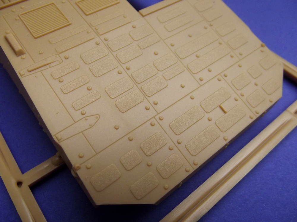 Für mich ist das der erste Bausatz von IBG Models, den ich auspacken darf. Und ich muss sagen ich bin angenehm überrascht. Denn was man da für rund 40,- € kaufen kann, ist schon sehr beachtlich. Das Modell des polnischen Schützenpanzers verfügt über eine Inneneinrichtung für Turm und Kampfraum. Die ist zwar nicht ganz vollständig, aber für einen Blick durch geöffnete Türen oder Luken ist sie mehr als ausreichend. Noch etwas Zubehör, persönliche Ausrüstung der Besatzung und schon passt es. Auch das Getriebe, samt Motor und Kühlsystem sind recht ordentlich dargestellt. Im Außenbereich finden sich schöne Details, wie zum Beispiel die Anti-Rutschbeläge. Mit leicht rauher Oberfläche hinterlassen sie schon einen sehr guten Eindruck. Der gute Eindruck wird durch leichte Unsauberkeiten im Bereich der Kühlluftöffnungen getrübt. Hier finden sich ein paar kleine Fischhäute die entfernt werden müssen. Zwar werden die Öffnungen mit Photoätzteilen versehen, nach der Lackierung dürften die kleinen Unregelmäßigkeiten aber sichtbar bleiben. Hier ist also etwas Nacharbeit angesagt. Diesem Bausatz liegen keine Reifen aus Vinyl sondern aus Polystyrol bei. Das ist schon mal positiv zu bemerken. Bei diesen Vinyl-Reifen kommt es leider häufig vor dass die Farben nicht richtig haften und / oder nicht richtig aushärten / trocknen. Zum Teil werden sie, nachdem sich der Weichmacher verflüchtigt hat, auch spröde und rissig. Daher finde ich die Entscheidung von IBG schon mal sehr gut. Auch eine Beschriftung der Reifenflanken ist vorhanden. Das Rad wird aus zwei Teilen für die Reifenflanken und einem Teil für die Lauffläche zusammengesetzt. Wenn sich die Einzelteile jetzt noch beim Bau perfekt und spaltfrei zusammenfügen lassen, kann man mehr als zufrieden sein. Die Bauanleitung führt in 55 Schritten zum fertigen Modell. Gezeigt werden die Baustufen in CAD Zeichnungen. Das wirkt zunächst auf mich etwas ungewöhnlich, aber nach kurzer Zeit der Eingewöhnung gefällt mir diese Art der Darstellung ebenfalls sehr gut. Die Baustufen sind recht übersichtlich und beinhalten meist nur eine geringe Anzahl an Bauteilen. Aber ab Stufe 23 beginnt man mit dem Fahrgestell / Fahrzeugrahmen. Und spätestens da wird es doch etwas haarig. Die Zeichnungen werden in den folgenden Baustufen recht klein und es kommen zum Teil sehr viele Bauteile zum Einsatz. Da muss man schon sehr genau hinsehen und wohl auch recht häufig trocken anpassen um die richtige Position für das entsprechende Bauteil zu ermitteln. Der Bausatz scheint nicht dafür ausgelegt zu sein die Räder mit einem Lenkeinschlag zu montieren. Aber mit etwas Arbeitsaufwand scheint es durchaus machbar zu sein. Die Bemalungsanleitung bietet, jeweils in Fünf-Seiten-Ansichten, zwei einfarbig grün lackierte Fahrzeuge, wie sie im Tschad 2009 bei den UN und EUFOR eingesetzt waren. Eine weitere Variante im Nato-Fleckentarnanstrich stellt ein Fahrzeug der 11. Lubuska Armored Cavalry Division dar. Die entsprechenden Markierungen für diese drei polnischen Fahrzeuge sind auf dem Decal-Sheet vorhanden. Die Farbangaben der Anleitung beziehen sich auf die Sortimente von Vallejo Model Air, Hataka, Life Color und AK-Interactive. Leider finden sich in der gesamten Anleitung weder Hinweise für die Lackierung der Inneneinrichtung noch für Motor und Getriebe. Hier wird man wohl oder übel nach Refrenzmaterial Ausschau halten müssen. Insgesamt würde ich dieses Modell als durchaus empfehlenswert einstufen. Das Preis-Leistungsverhältnis stimmt und die gelieferte Qualität ist ebenfalls in Ordnung. Klare Kaufempfehlung!