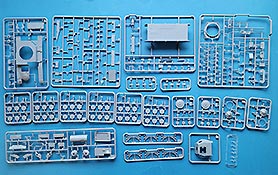 Im Karton finden wir 20 graue Spritzlinge, einen transparenten Spritzling, 20 Reihen Kettenspritzlinge, zwei PE Platinen und einen Decalbogen.