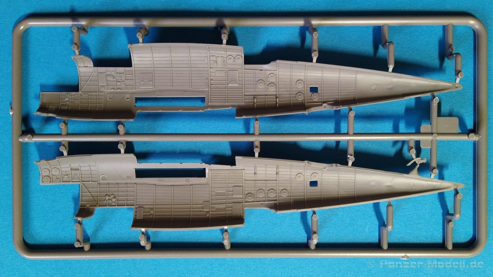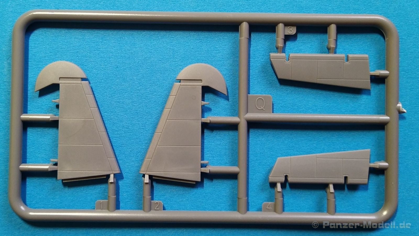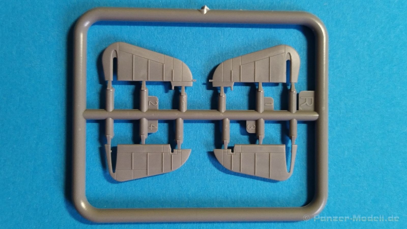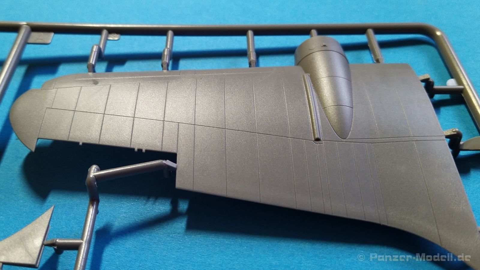 Die Rumpfhälften sind innen, wie auch außen schön graviert. Die Höhen- und Seitenruder weisen schön scharfe Kanten auf und lassen sich in verschiedenen Positionen montieren.