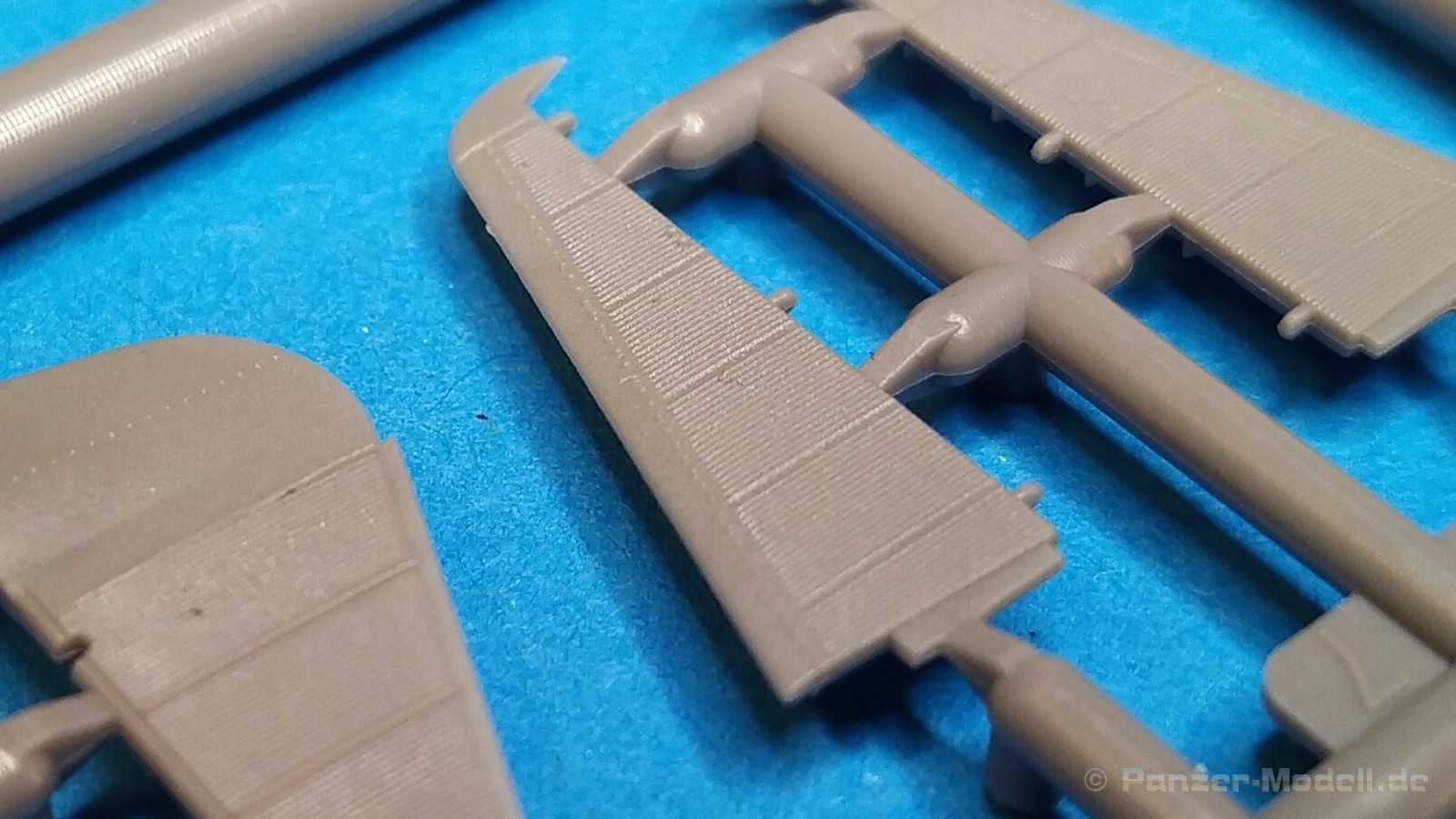 Beim polnischen Hersteller IBG-Models findet man unter der Nummer 72553 den Bausatz „PZL P.24A/F in Turkish Service“ im Maßstab 1:72 Die PZL P.24 ist ein ursprünglich in Polen konstruiertes einmotoriges Jagdflugzeug aus den 1930er Jahren. Der Typ P.24 basiert in großen Teilen auf dem erfolgreichen Typ P.11c und war somit auch ein in Ganzmetall-Bauweise ausgeführter abgestrebter Schulterdecker. Hersteller war die Państwowe Zakłady Lotnicze (PZL) (Staatliche Luftfahrt-Werke) mit Sitz in Warschau. Markant bei diesen Baumustern waren die auch Möwenflügel genannten Pulawski-Flügel. Das Fahrwerk war starr und am Heck gab es nur einen Schleifsporn. Die großen Unterschiede zu vorhergehenden Baumustern war u.a. die Verwendung von Gnome-Rhone 14N Triebwerken statt den zuvor verwendeten Bristol-Sternmotoren und die Verlegung der Bewaffnung in die Flügel. Flugzeuge dieses Typs wurden in Polen für die eigenen Luftstreitkräfte aber auch für den Export gebaut. Weiterhin wurden im Ausland auch Flugzeuge in Lizenz gefertigt. Ausländische Nutzer waren u. a. Bulgarien, Rumänien, Griechenland oder wie hier vorliegend die Türkei. In der Türkei wurden die Flugzeuge in der „Kayseri Tayyare Fabrikasi (KTF) ab 1936 produziert. Genug zum Original, schauen wir in den praktischen Stülpkarton (30 x 20 x 4,5cm) Dort findet sich der folgende Inhalt: - 1x zwölfseitige Bauanleitung mit 13 Baustufen und 3 Farb- und Markierungsvarianten - 11x Spritzlinge in grauem Kunststoff - 1x Spritzling in klarem / durchsichtigem Kunststoff - 2x Fotoätzplatine (PE-Teile) - 1x Klarsichtfilm für die Verglasung - 1x Nassschiebebilderbogen (Decals) Alle Spritzlinge machen auf den ersten Blick einen guten Eindruck. Gravierung und Detailierung und der Teile sind wiedermal IBG-typisch gut. Scharfkantigen Details und fein ausgestaltete Oberflächenstrukturen wissen zu gefallen. Auswerfermarken und Fischhäute sucht man vergebens. Speziell die Klarsichtteile sind schön dünn und auch schlierenfrei ausgeführt. Auch dieser Flugzeugbausatz besteht klassischerweise aus linker und rechter Rumpfhälfte und jeweils Ober- und Unterteil für die Flügel rechts und links und weiteren Anbauteilen wie z.B. Höhen- und Seitenruder. Die Rumpfhälften sind innen, wie auch außen schön graviert. Die Höhen- und Seitenruder weisen schön scharfe Kanten auf und lassen sich in verschiedenen Positionen montieren. Die Proportionen des Originals werden gut wiedergegeben und wirken stimmig. Bei den Fotoätzteilen wurden nur sinnvolle Teile ausgewählt. So zum Beispiel die Pedalerie, Gurtzeug und Stellräder im Cockpit, die für Detailreichtum des Gesamtbildes sorgen. Eine detaillierte Inneneinrichtung des Cockpits und die Wahlmöglichkeit die Kanzel-Verglasung einmal als Komplettklarsichtteil oder wer es ein wenig filigraner mag originalgetreuer als Rahmen aus Fotoätzteilen mit Klarsichtfilmmaterial zu bestücken, sind weitere Highlights dieses Fliegers. Die Darstellungen in der beiliegenden Bauanleitung im DIN-A4-Format lassen keine Fragen offen. Alle Hinweise sind wie gewohnt in polnischer und englischer Sprache vorhanden. Ein kurzer historischer Abriss zum Original findet sich zu Beginn der Anleitung. Die zweite Seite zeigt eine Übersicht der enthaltenen Spritzlinge, Decals und Fotoätzteile. Auf der nächsten Seite folgt eine Detaildarstellung für die Bemalung und Markierung des Cockpitbereiches. Hier findet man auch eine sehr ausführliche Farbtabelle für die Hersteller Vallejo, Hataka, Life Color, Mr. Hobby, AK Interactive und Mission Models. Im Anschluss startet der eigentliche Zusammenbau, der sich in insgesamt 13 Baustufen gliedert. Hier wird pro Baustufe anhand von schwarz-weißen 3D-Zeichnungen der Weg zum fertigen Modell dargestellt bzw. erklärt. Klassisch für ein Flugzeug wird in den Baustufen 1 und 2 mit dem Cockpit begonnen. Im Anschluss werden die beiden Rumpfhälften zusammengeklebt. Bei der Montage des fein detaillierten Sternmotors in Baustufe 5 und 6 wird durch die Verwendung mehrerer „Ebenen“ für Tiefe und Detailreichtum gesorgt. Diese Baustufen sind auch in „a“ und „b“ für verschiedene Markierungs- und somit auch Versionsvarianten aufgeteilt. Hier muss im Vorfeld eine Entscheidung getroffen werden, welche Version es wirklich werden soll. Die markanten Flügel folgen im Anschluss ab Baustufe 7. Auf die Füße bzw. das Fahrwerk kommt der Flieger in Baustufe 11. In der letzten Baustufe 14 muss dann noch die Wahl getroffen werden ob das gute Klarsichtkomplettteil für die Cockpitverglasung verwendet werden soll oder die Variante als Kombination aus Fotoätzteil und Klarsichtmaterial dem Modell noch einen weiteren Detailvorsprung gibt. Den Abschluss der Bauanleitung bilden dann die 3 farbigen Bemalungs- und Markierungsvorschläge. Folgende Markierungs- bzw. Bemalungsvarianten werden hier gezeigt: 1. P.24 A Nr. 2018, von KTF produziert, silberne Lackierung, 4. Hava Alayi (4.Luft Regiment), Kütahya, Türkei, 1938-392. P.24 A Nr. 2005, von PZL produziert, Tarnanstrich in erdfarben und dunkelgrün, unbekannte Einheit, Türkei, 1. Halbjahr 19403. P.24 A Nr. 2008, von PZL produziert, Tarnanstrich in erdfarben und dunkelgrün, 5. Hava Alayi (5.Luft Regiment), Corlu, Türkei, ca. 1940-41Die Nassschiebebilder (Decals), von Techmod beigesteuert, sind wie gewohnt auf einem kleinen hellblauen Trägerpapier produziert. Alle Elemente sind scharfkantig, ohne Versatz und sehr feindetailliert gedruckt.Mein Fazit: Dieser markante polnische Flieger in türkischen Diensten wurde von IBG-Models toll umgesetzt. Einen gut durchdachten, sehr gut detaillierten und qualitativ hochwertig, umgesetzten Flugzeugbausatz haben wir hier vorliegen. Für den Preis von ca. 13 Euro bietet der Bausatz sehr gut ausgeführte Spritzlinge mit tollen Details, Fotoätzteile und Decals Eine absolute Kaufempfehlung!