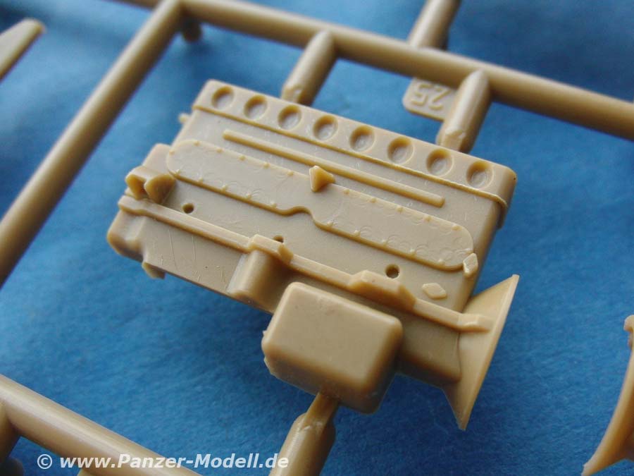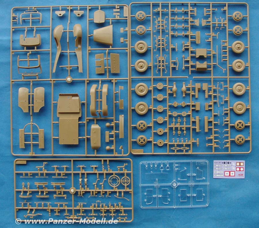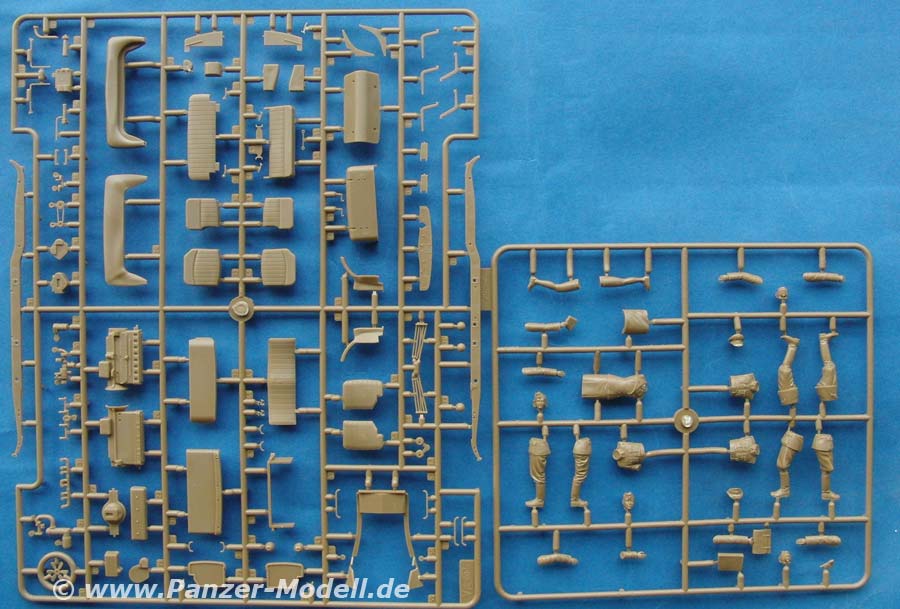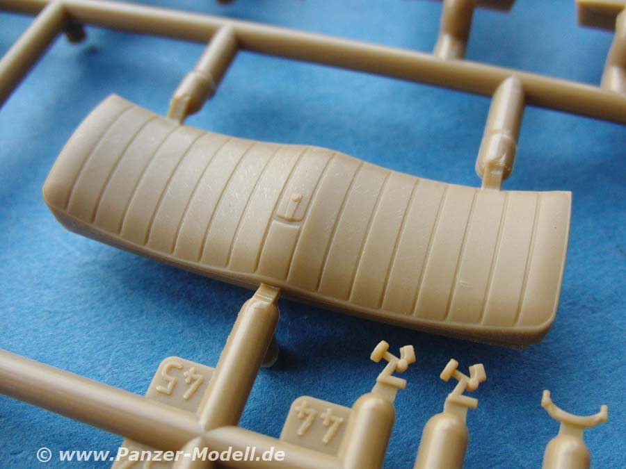 Im Bausatz finden sich 6 Spritzlinge inkkusive einem kleinen Spritzling mit Klarsichtteilen, sowie ein Decalbogen.