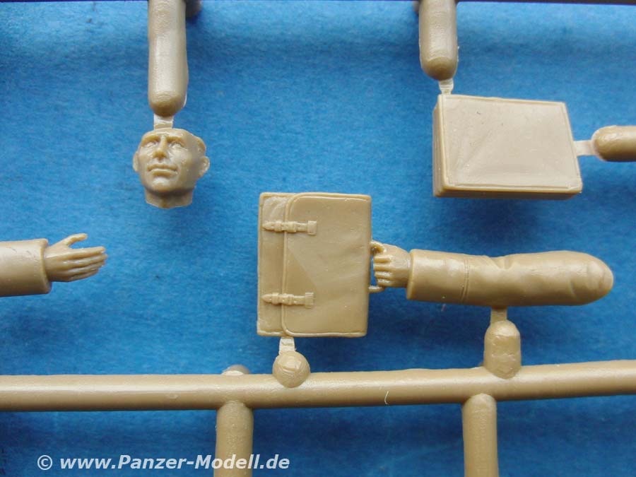 Dennoch - die beiliegenden Figuren machen einen guten Eindruck und stellen zwei Offiziere, eine Ordonnanz und eine Sekretärin in Uniform dar.