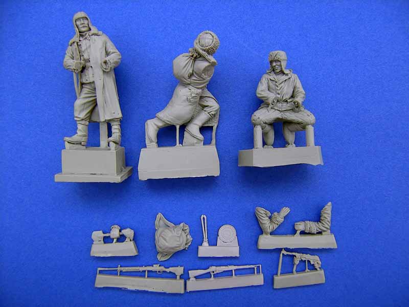 Die Figur, bestehend aus dem Körper mit bereits angegossenen Beinen und Kopf, ist qualitativ als sehr hochwertig zu bezeichnen. Die Arme liegen lose bei, die rechte Hand ist bereits an das Griffstück der Kalashnikov angegossen. Das sorgt für einen perfekten Sitz der Waffe in der Hand.