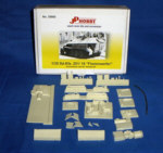 weiteres Conversion Set für das Sd.Kfz.251 kommt mit der Nummer 35007 und stellt das Sd.Kfz.251/7 mit Panzerbüchse dar. Das Set enthält etwa 30 Resinteile, wovon 8 auf die Panzerbüchse entfallen. Die weiteren Teile sind eine neue Bodenwanne, sowie Sitze und Zubehörkisten und natürlich die beiden Schnellbrückenteile mit Halterungen für die Aussenseiten. Die Teile sind sauber gegossen und ausreichend detailliert, die beiden Schnellbrückenteile finde ich gut gelungen, der Innenraum könnte eine Spur besser detailliert sein. Die Anleitung gibt in 2 Bauschritten die Montage der Teile an, die übersichtlich dargestellt keine Probleme bereiten dürften. Alles in allem ein Bausatz den man sich mit Geduld und Können auch selber machen könnte, aber sich auf diesem Weg viel Arbeit erspart und eine gute Qualität liefert. Mit 69,95 € liegt der Umbausatz allerdings eher am oberen Bereich der Schmerzgrenze, vergleichbare Produkte von Azimuth oder Verlinden kosten deutlich weniger, sind allerdings auch nicht so gut lieferbar.