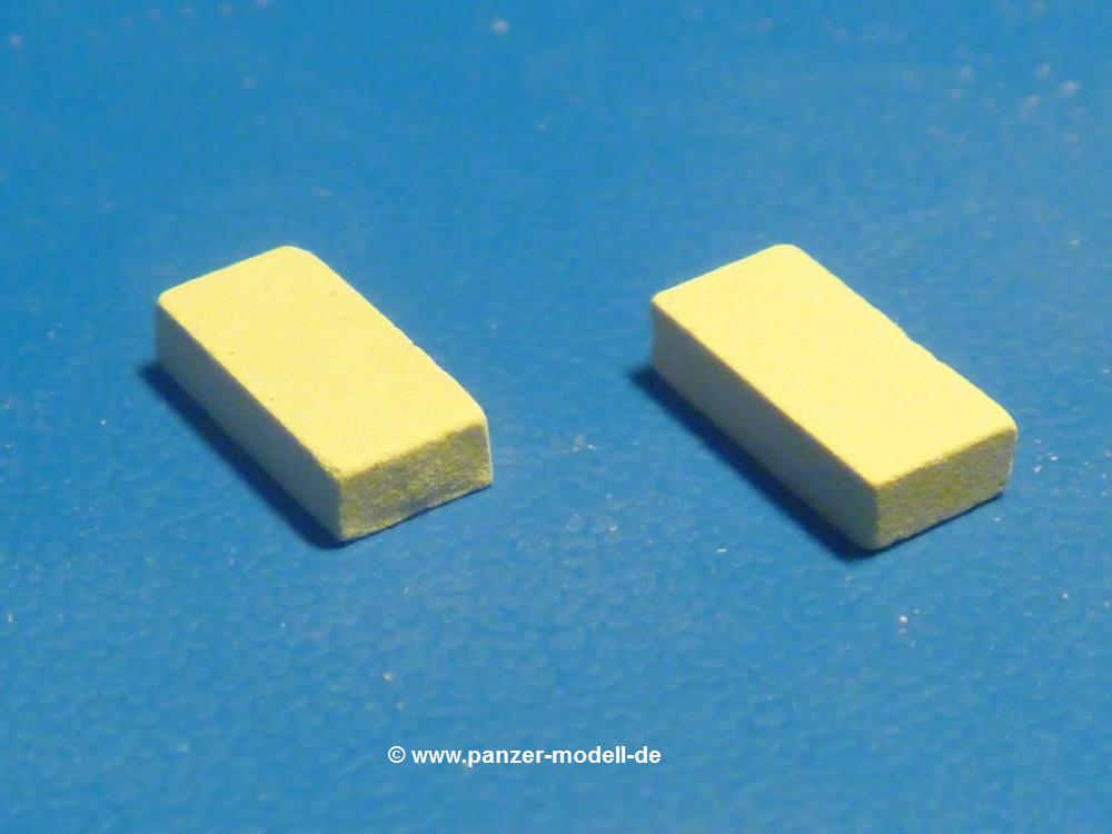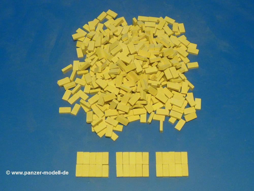 Häuslebauer aufgepasst - es muss nicht immer 1:1 sein. Die Firma Juweela bietet unter der Nummer 23038 einen Satz hell-beige Ziegel im Reichsformat an. Wie beim Original bestehen die Ziegel aus Keramik und sind von der Größe her im Maßstabsbereich 1:35 bis 1:32 einsetzbar. Jeder Ziegel misst 0,72 x 0,36 x 0,18 cm.