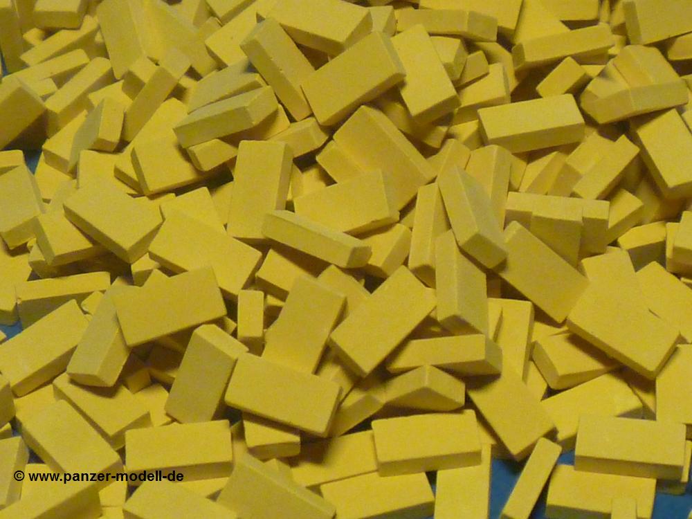 Wer nicht gleich ein Haus draus bauen möchte, kann die Ziegel als Ladegut auf einen Lkw laden, in einem Diorama einen Schutthaufen darstellen oder als Trümmerreste auf einen Panzer legen.