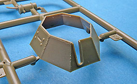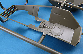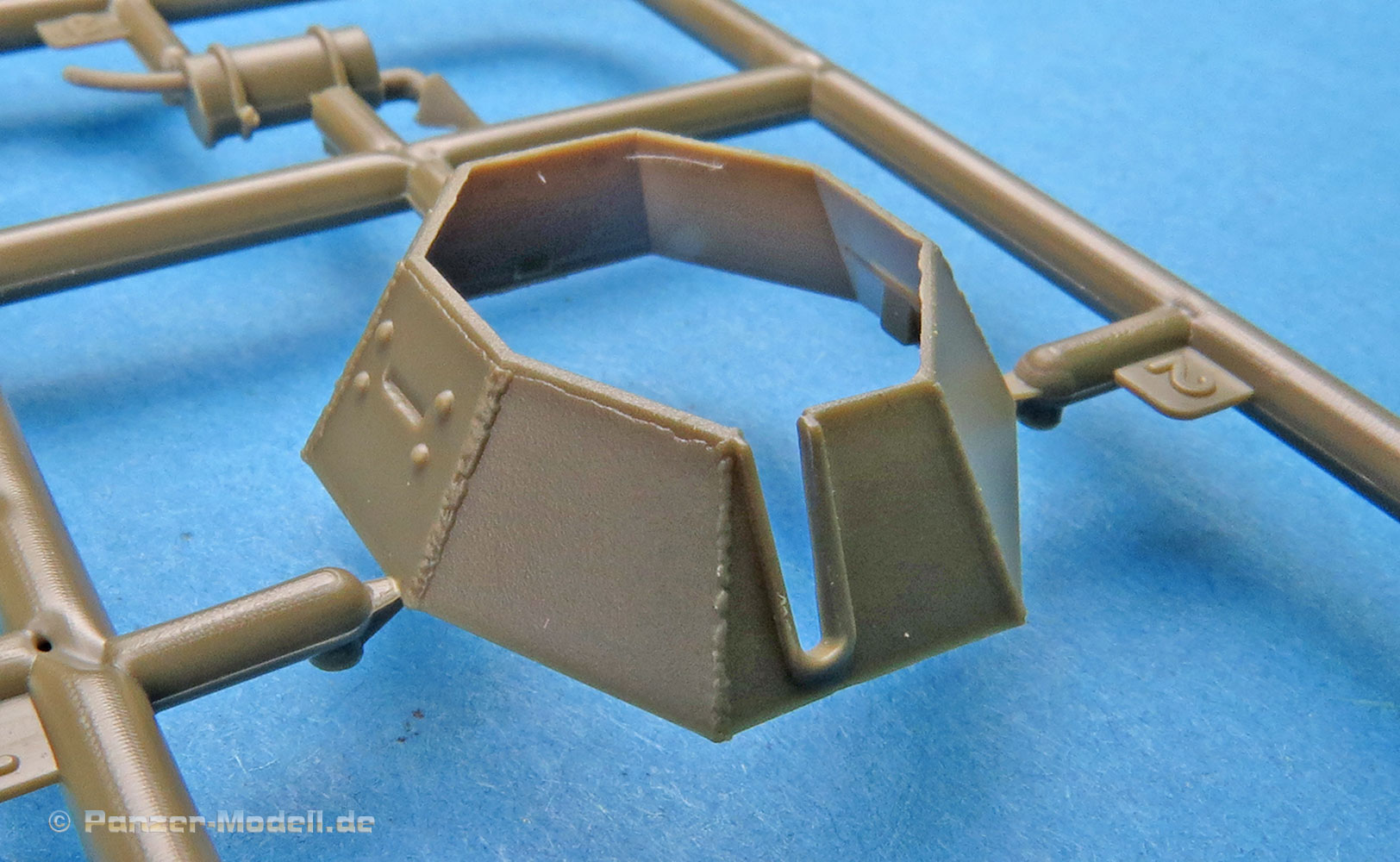 In den Turm wird ein MG und der Hängesitz eingebaut. Das MG sieht als 3D Druckteil sehr fein und detailleirt aus und hat das Tellermagazin aufgesetzt.Das MG liegt allerdings auch als "normales" Spritzgussteil bei und kann wahlweise mit oder ohne Tellermagazin gebaut werden.
