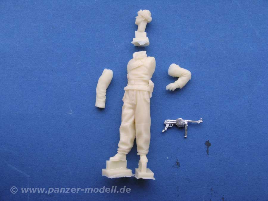 Die Angüsse sind angenehm schmal gehalten und an Stellen wo sie später nicht stören. Als nettes "Gimmick" ist eine MP aus Metall enthalten und bereits angegossener Hand für den rechten Arm.