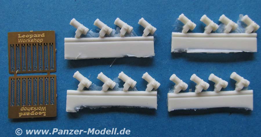 Mit diesem Set kann der geneigte Modellbauer die Nebelbecher der Leopard bis Baulos 7 in der alten Ausführung der je vier Nebelbecher pro Halterung bauen