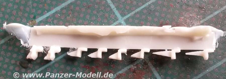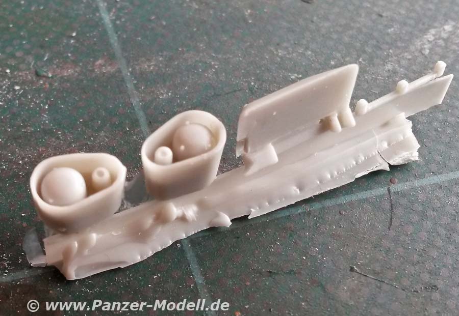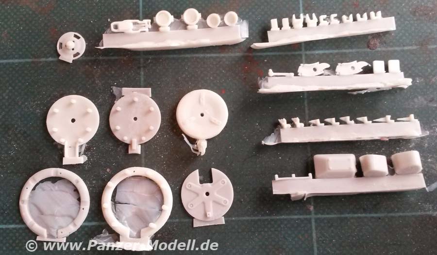 Die Teile sind samt und sonders in Resin gegossen in perfektem Guss ohne Luftbläschen oder Verzug. An filigran gegossenen Teilen finden sich ein paar Fischhäute, die sich aber schnell entfernen lassen.