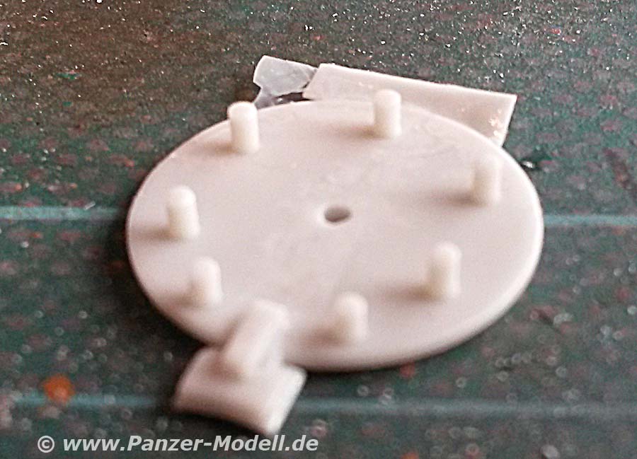 Die enthaltenen Teile umfassen dabei die beiden kompletten Turm-Lukendeckel mit Handrädern sowie beide MG Schienen und Halterungen, die in Plastik nicht so detailliert und fein sind. Dazu neue Scheinwerfer (plus selbstklebende Linsen), neue Rückleuchten, Katzenaugen, neue Griffleiste des Heckstaukastens und eine neue ABC Hutze, die gegenüber dem Revellteil die richtigen (oder überhaupt) Details zeigt.