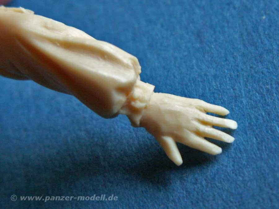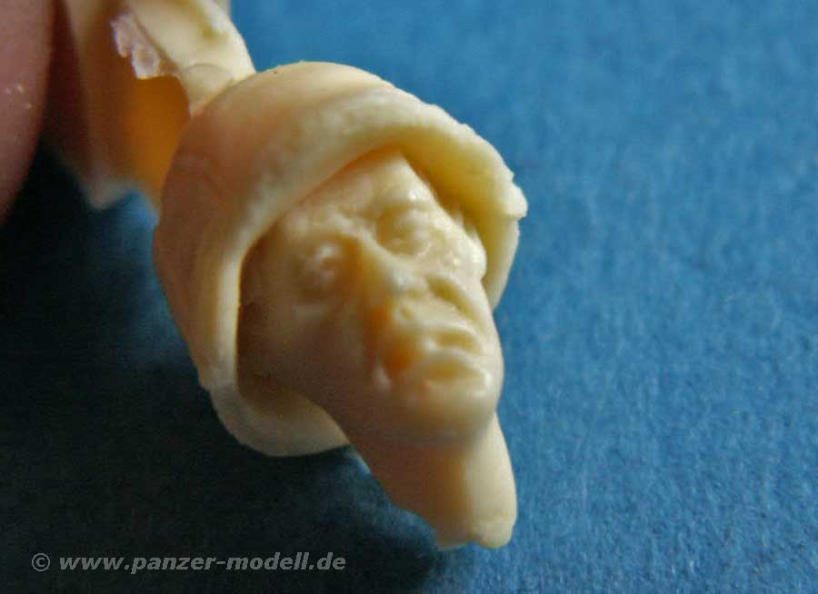 Der Resinguss dieser Figur ist sehr gut und sehr detailiert - das Gesicht ist mit feinen Details und Gesichtszügen versehen, die der Figur Ausdruck verleihen. Faltenwurf der Kleidung ist realistich und gut gemacht. Auch die Hände mit den feingliedrigen Fingern wissen zu überzeugen.