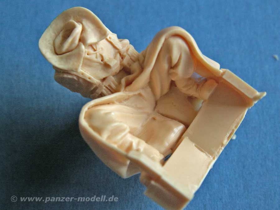Der Detailgrad ist sehr gut, allein die hockende Figur macht einen exzellenten Eindruck und die Schichtung und Faltenwurf der Kleidung einen richtig dreidimensionalen Eindruck. Auch die Köpfe sind hier von allererster Qualität mit feinsten Details. Die Hände sind teilweise bereits mit entsprechendem Gerät (MP bzw. Haftmine) gegossen, was ebenfalls sehr gut wirkt.