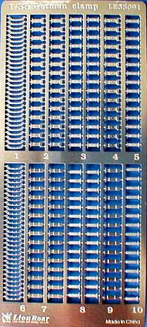 Zu guter letzt haben wir hier das Set 35091, Werkzeughalterungen für deutsche Panzer im zweiten Weltkrieg. Auch wieder von feinster Detaillierung finden sich hier 4 verschiedene Ausführungen von Halterungen für das Außenbordwerkzeug. Der Packungsinhalt wird ausreichen um mehrere Panzerfahrzeuge vollständig auszustatten.