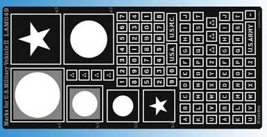 Ein Set mit Spritzschablonen für U.S. Militärfahrzeuge finden wir unter der LAM049.