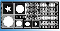 Das Set enthält eine hauchdünne Schablone für den U.S. Stern in zwei Größen, Ziffern von 0 - 9 sind je dreifach, Buchstaben von A - Z sind je zweifach vorhanden. Darüber hinaus sind Bindestriche und die Dreiecke ebenso vorhanden wie auch folgende Schriftzüge: U.S.A., U.S.M.C. und U.S. ARMY Somit haben wir alles was das Herz begehrt um unsere U.S. Fahrzeuge ohne den lästigen Decal - Trägerfilm realistisch markieren zu können. Die Schablonen werden mit Klebeband am Fahrzeug angebracht und mit der Airbrush wird das Symbol entsprechend lackiert. Für den Stern mit Kreis sind dann zwar drei Arbeitsgänge nötig, aber die Mühe wird belohnt. Denn das lackierte Symbol wirkt absolut realistisch. Eine leicht verständliche Anleitung zum Umgang und Handhabung der Spritzschablonen liegt ebenfalls bei.