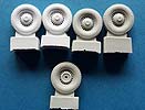 Das vorliegende Set enthält 5 Resinteile zur Darstellung der Reifen plus Ersatzreifen des VW T3 im Maßstab 1:35.